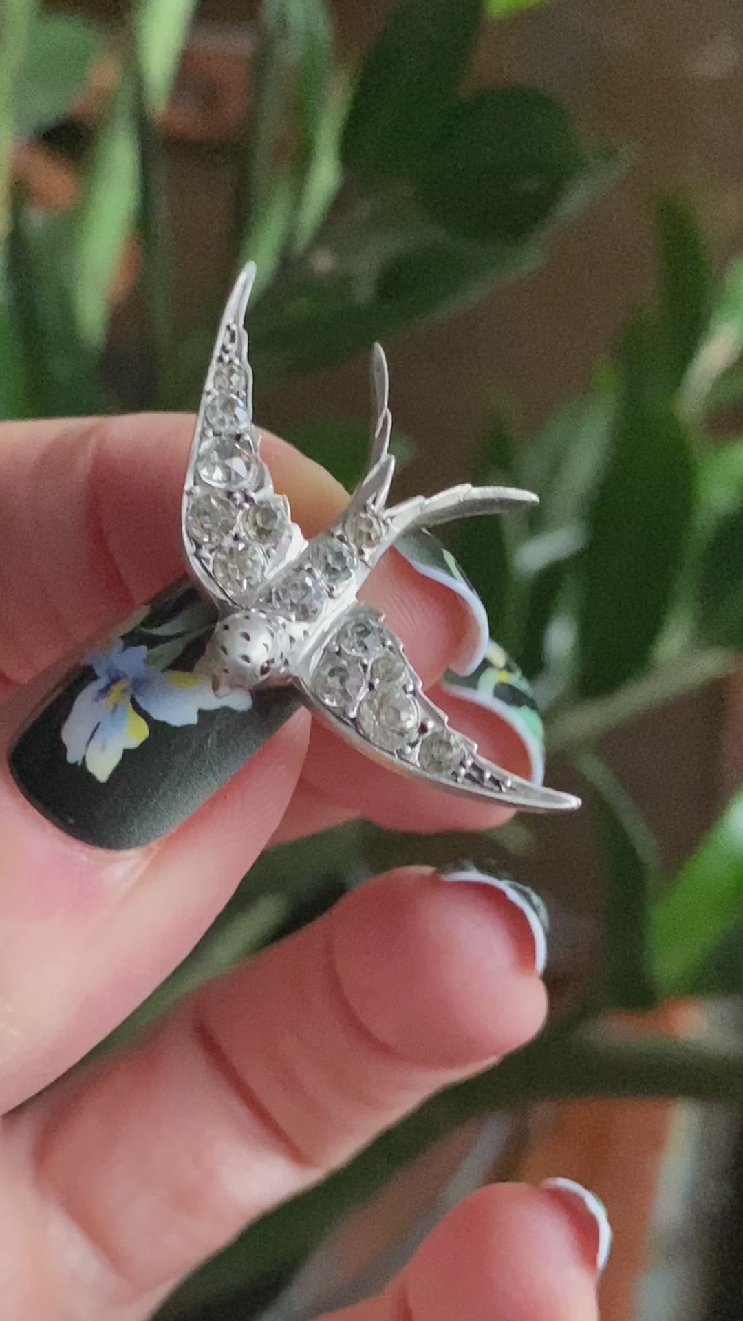 This antique Victorian .900 European silver handmade swallow bird pendant features gorgeous clear paste gems throughout the body and wings of the bird and lovely glass ruby eyes. This pin weighs 5.5 grams and measures 39mm wide. This handmade piece is in great antique condition with light wear and is marked as shown.