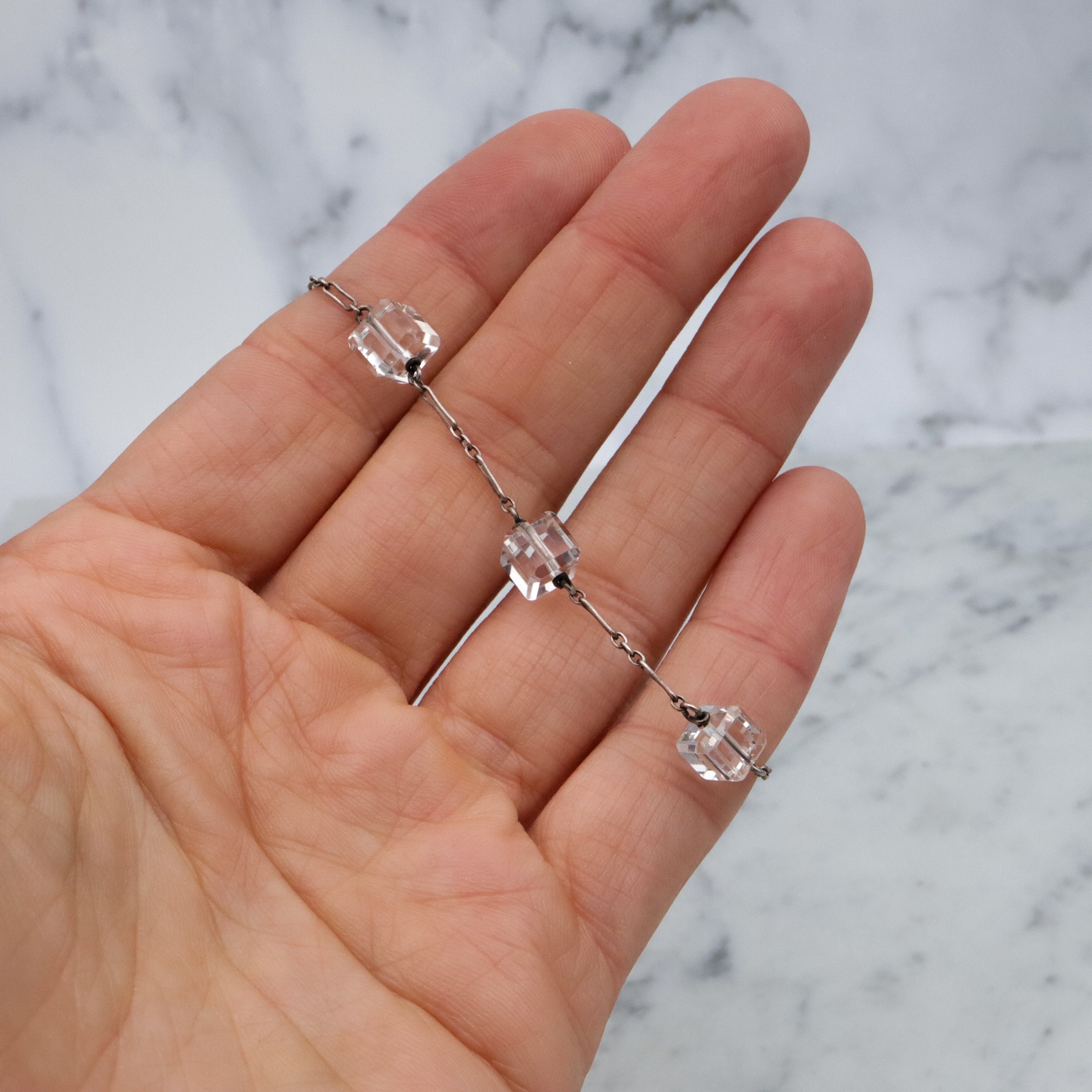 Antique Art Deco rock crystal block bead sterling link bracelet