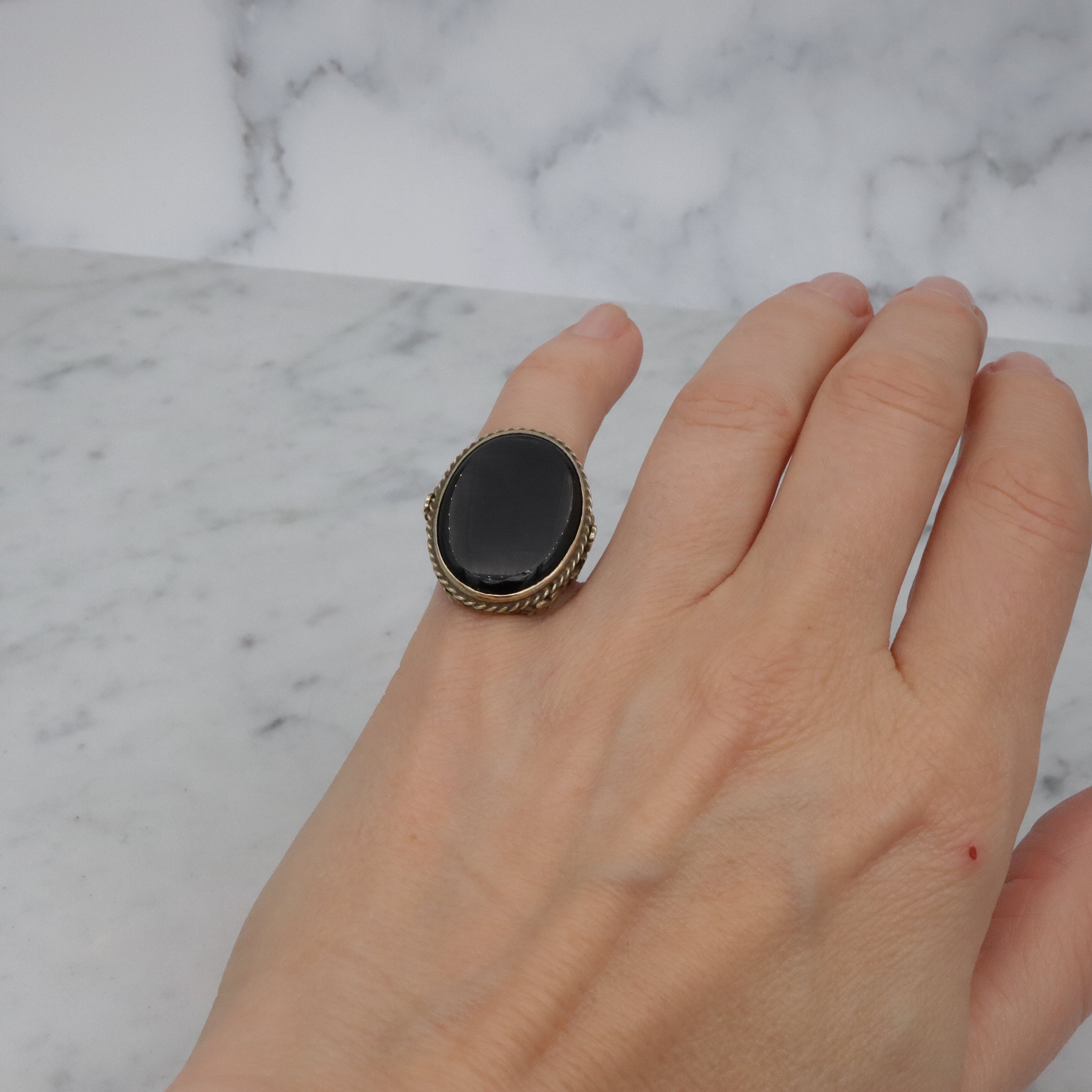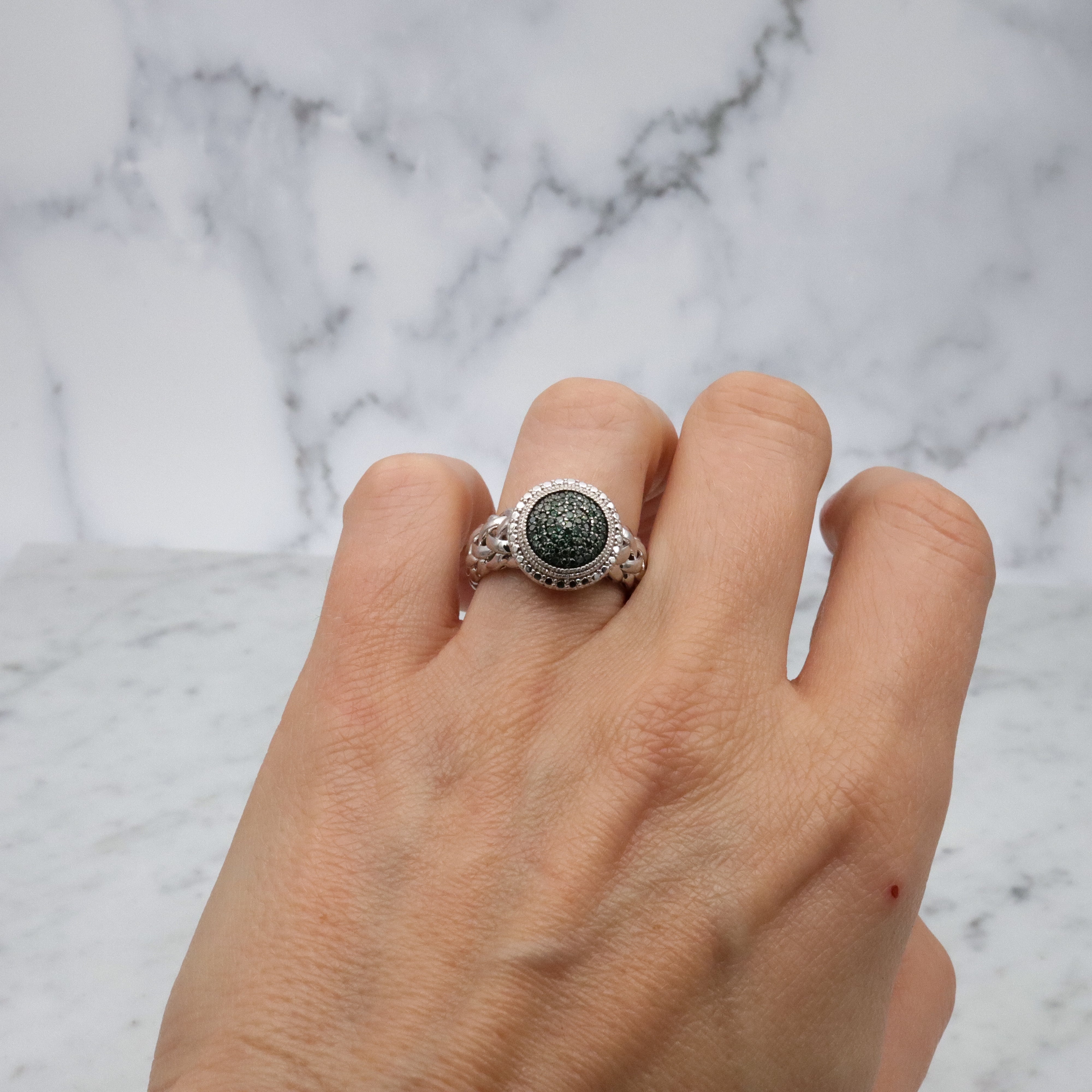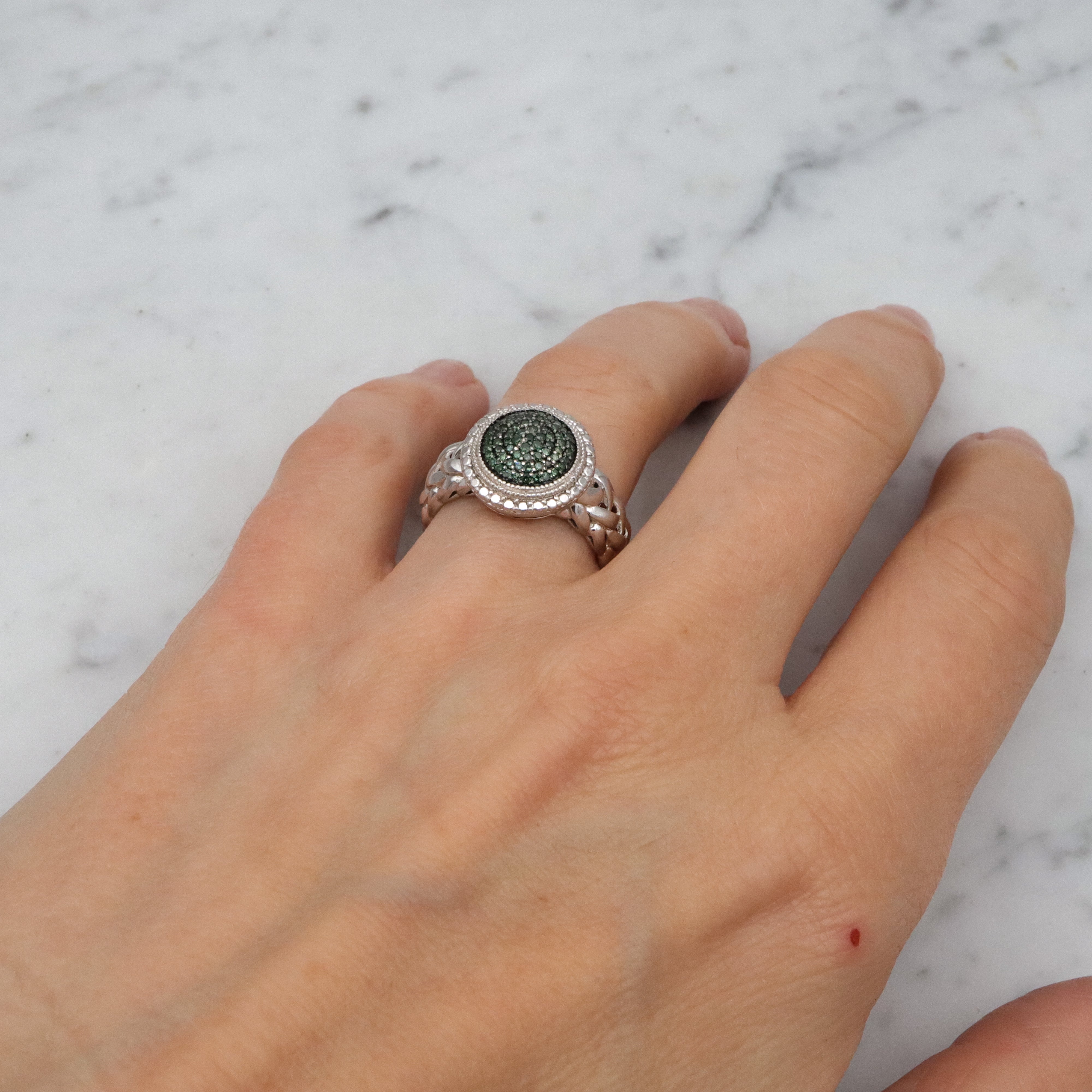 Retro Joseph Schmid green diamond braided sterling ring, size 8