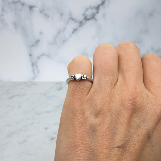 Retired James Avery heart & forget me not flower sterling ring, size 4.5