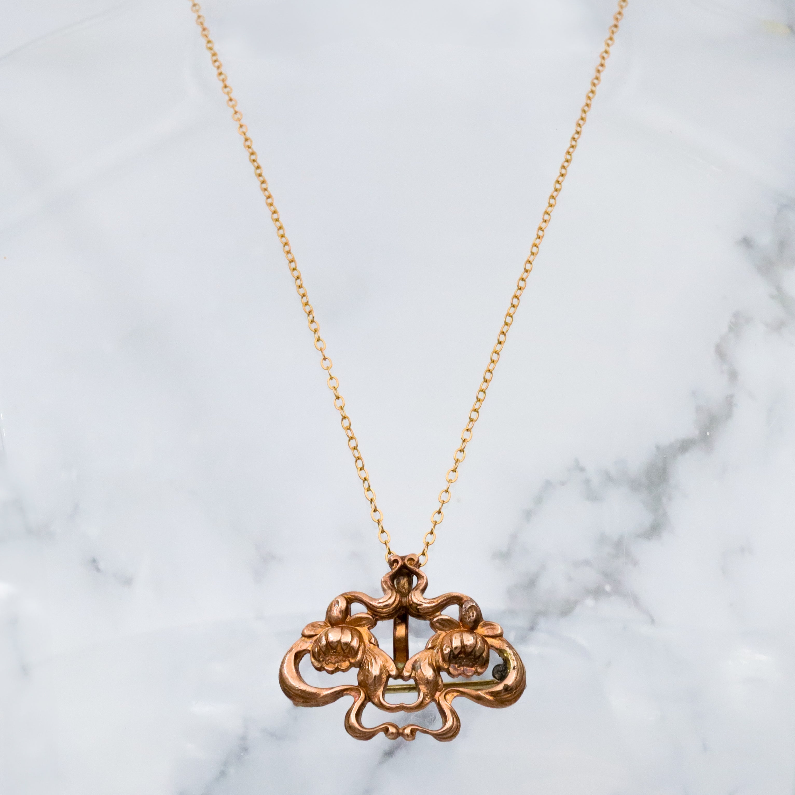 Antique Art Nouveau brass lotus flower watch clip brooch