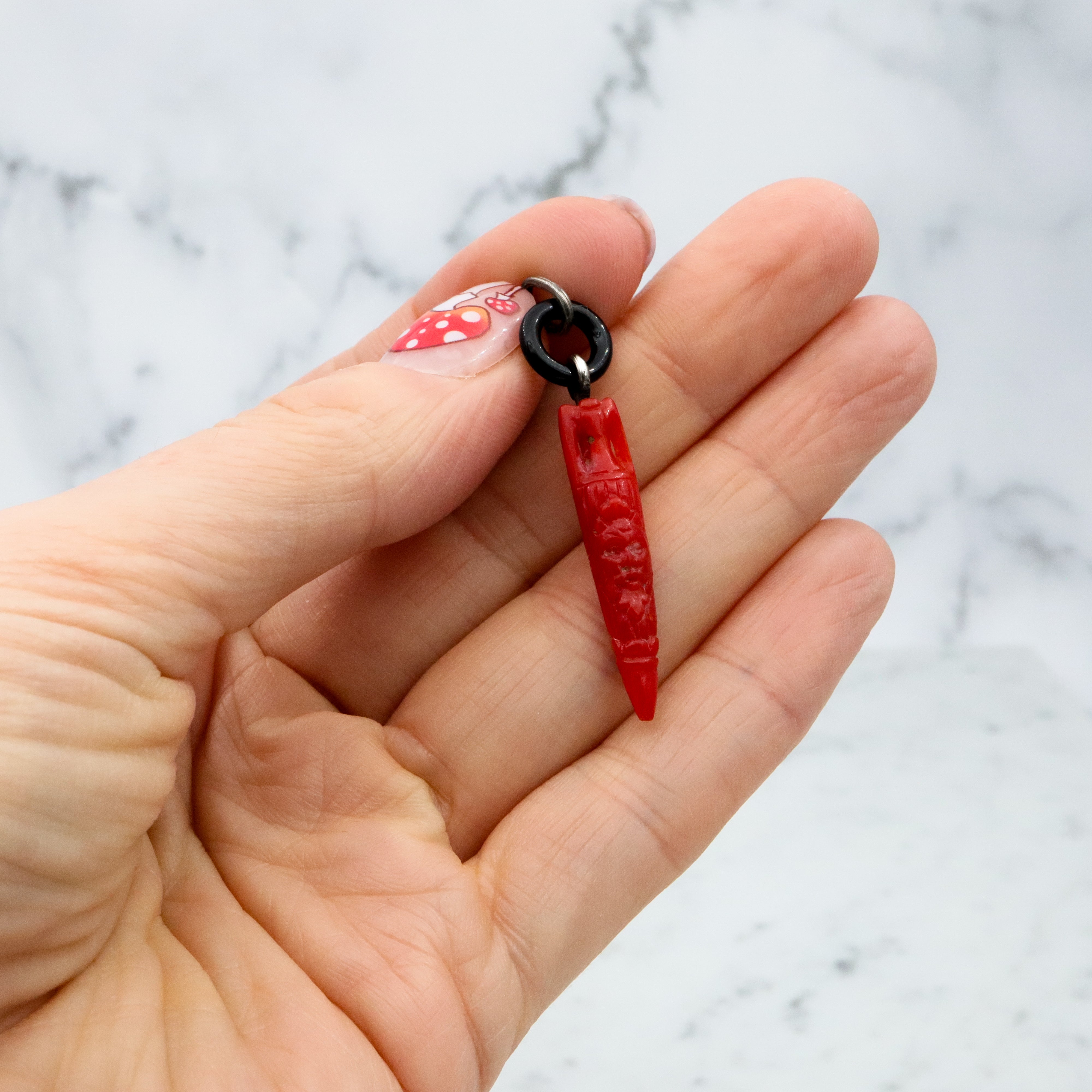 Antique Victorian carved coral amphora urn & onyx loop pendant