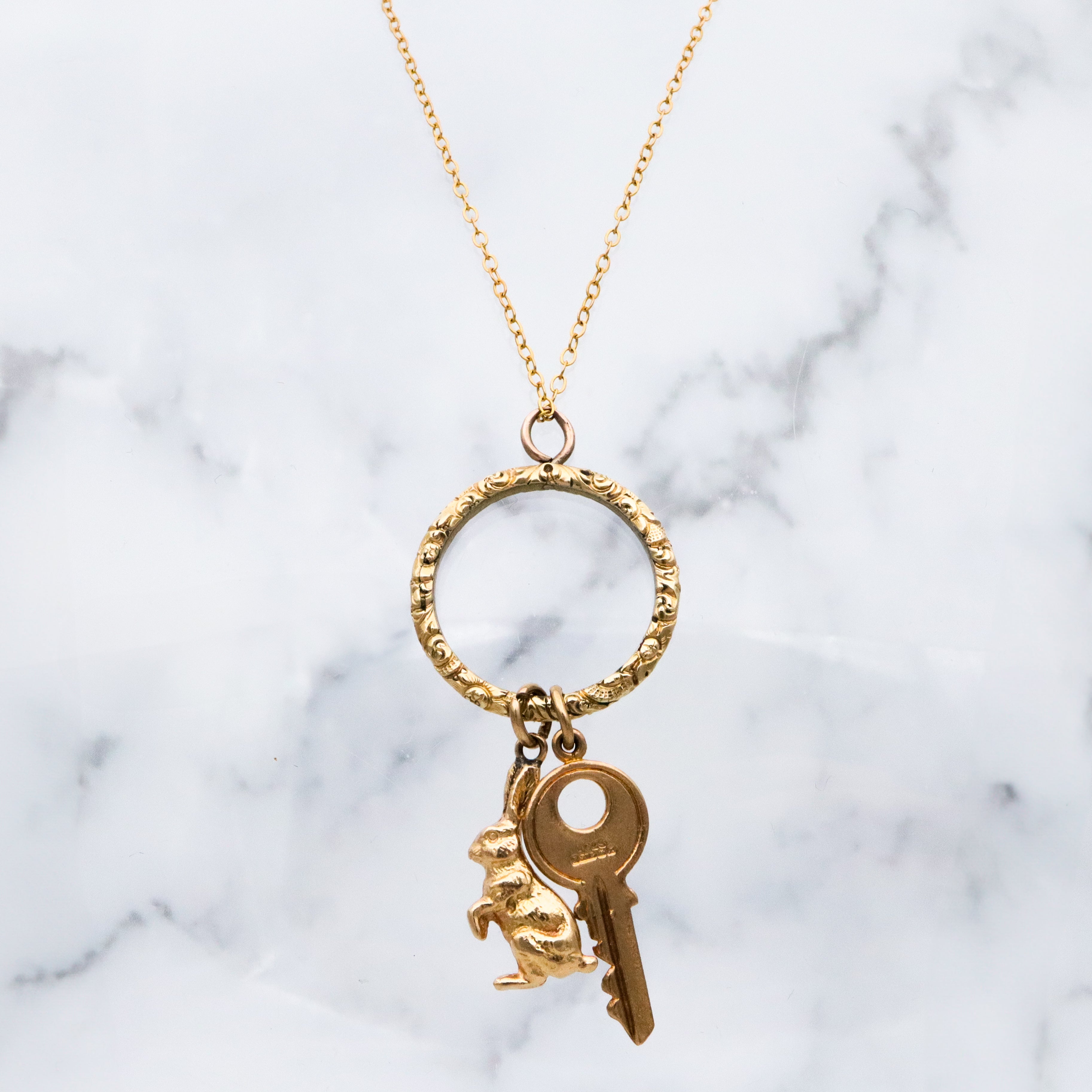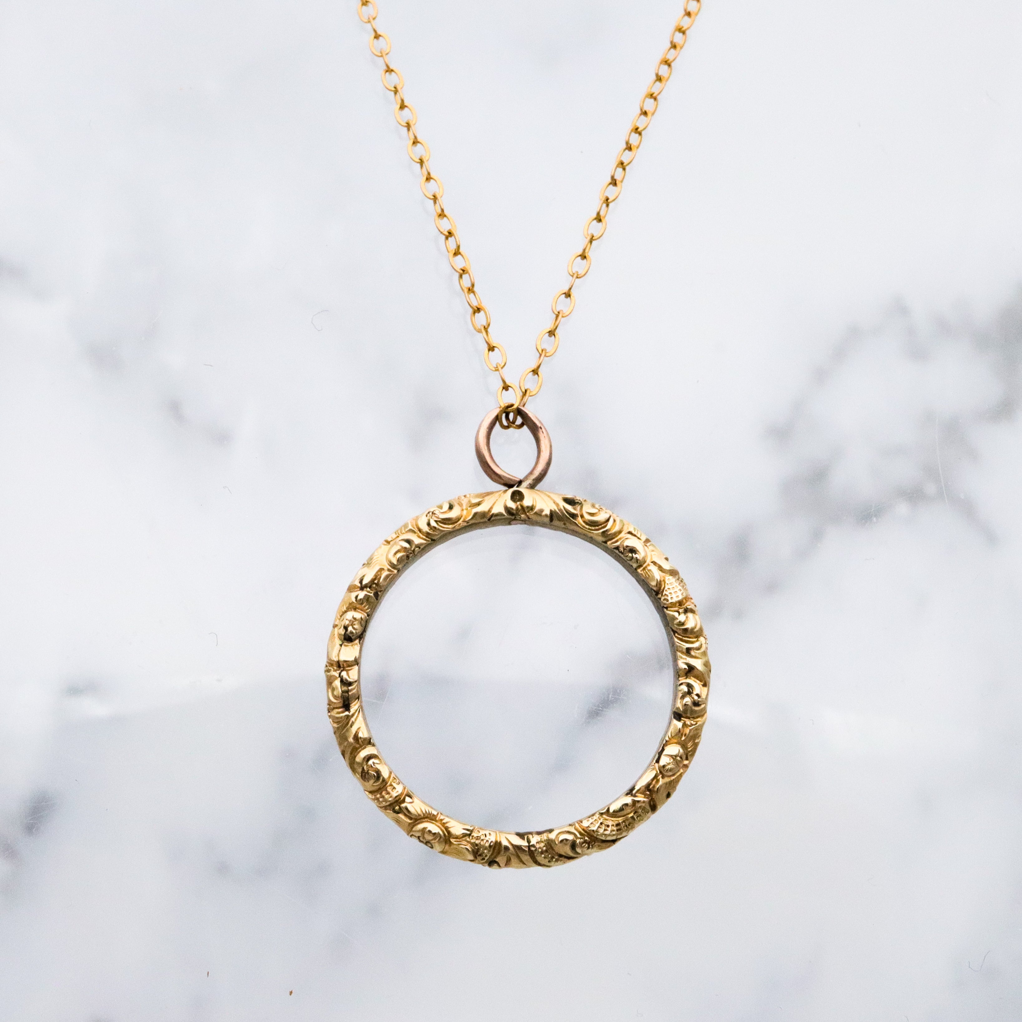 Antique Georgian rolled gold repousse split ring style charm holder pendant