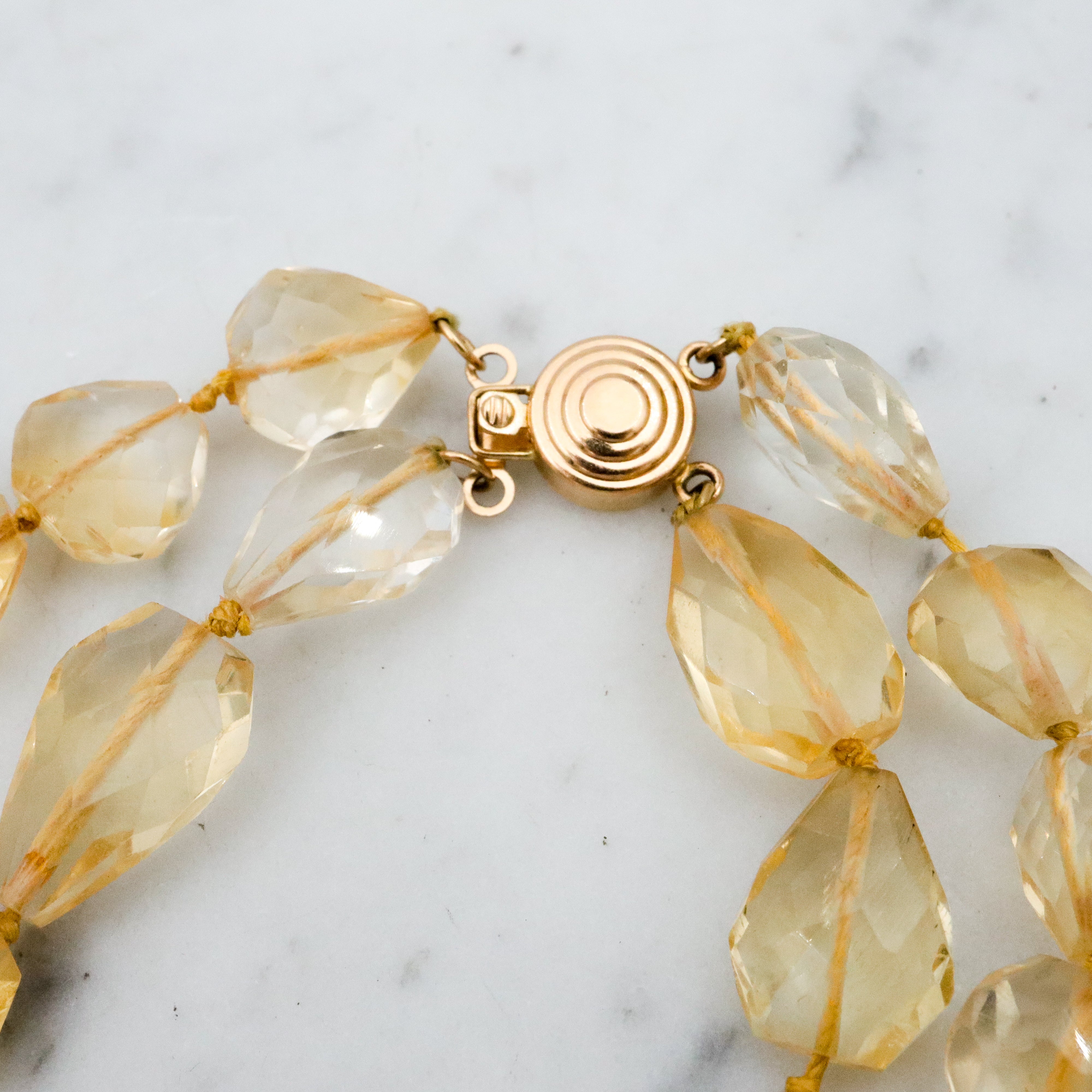 Retro double strand hand cut natural citrine beaded necklace with 14k clasp