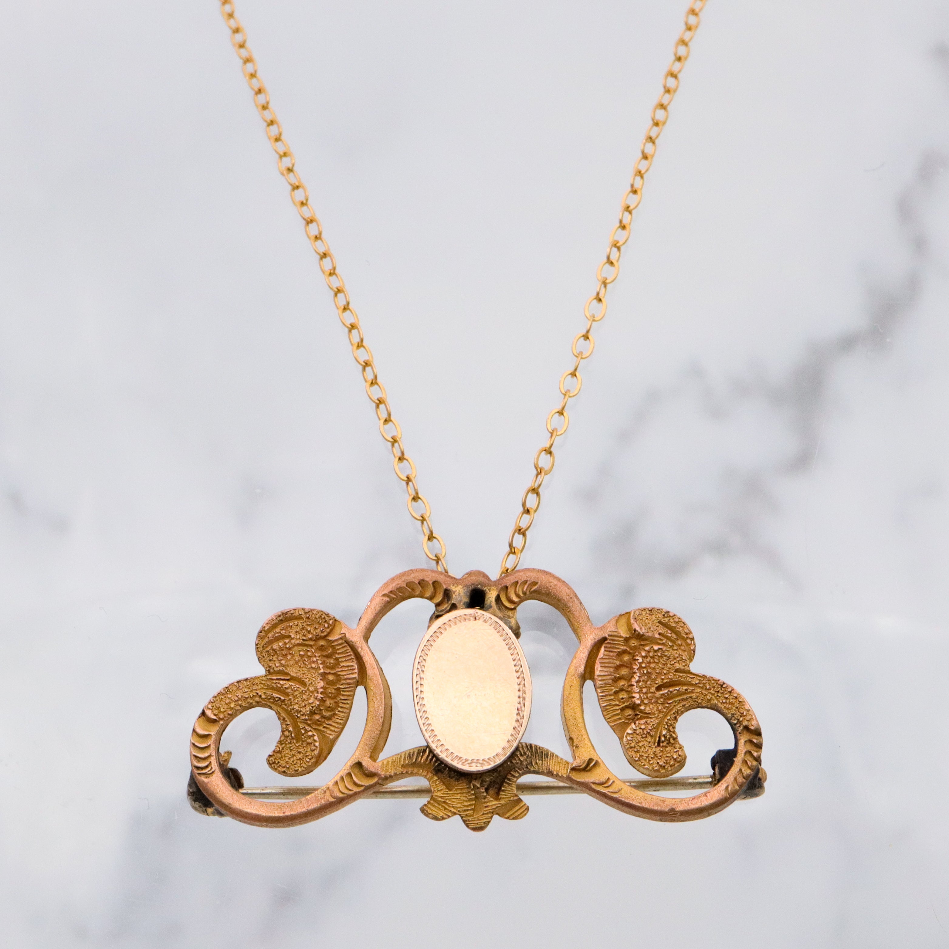 Antique Victorian Rococo style gilt metal floral vine & plaque watch clip pin