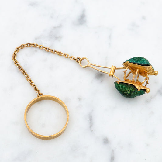 rare antique Egyptian Revival 14k gold scarab beetle handkerchief holder with ring