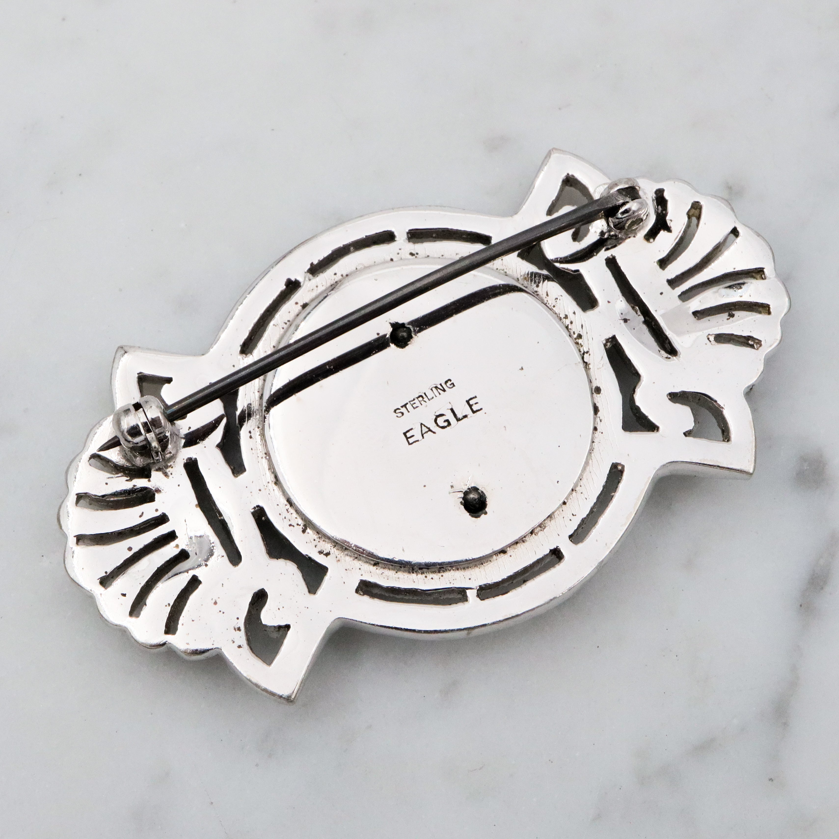Antique Art Deco sterling marcasite floral framed brooch by EAGLE