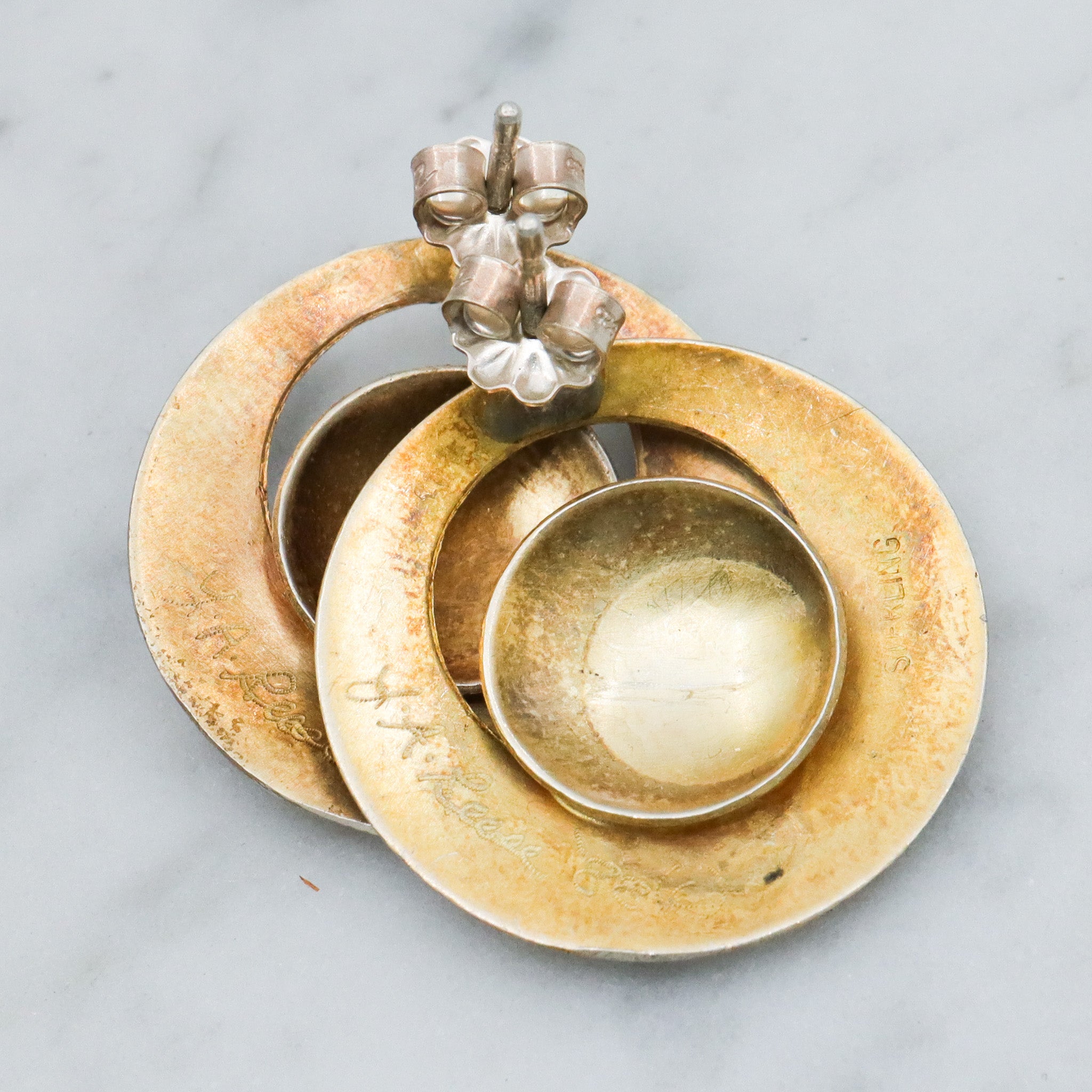 Mid Century gold vermeil sterling silver disc earrings, artist signed