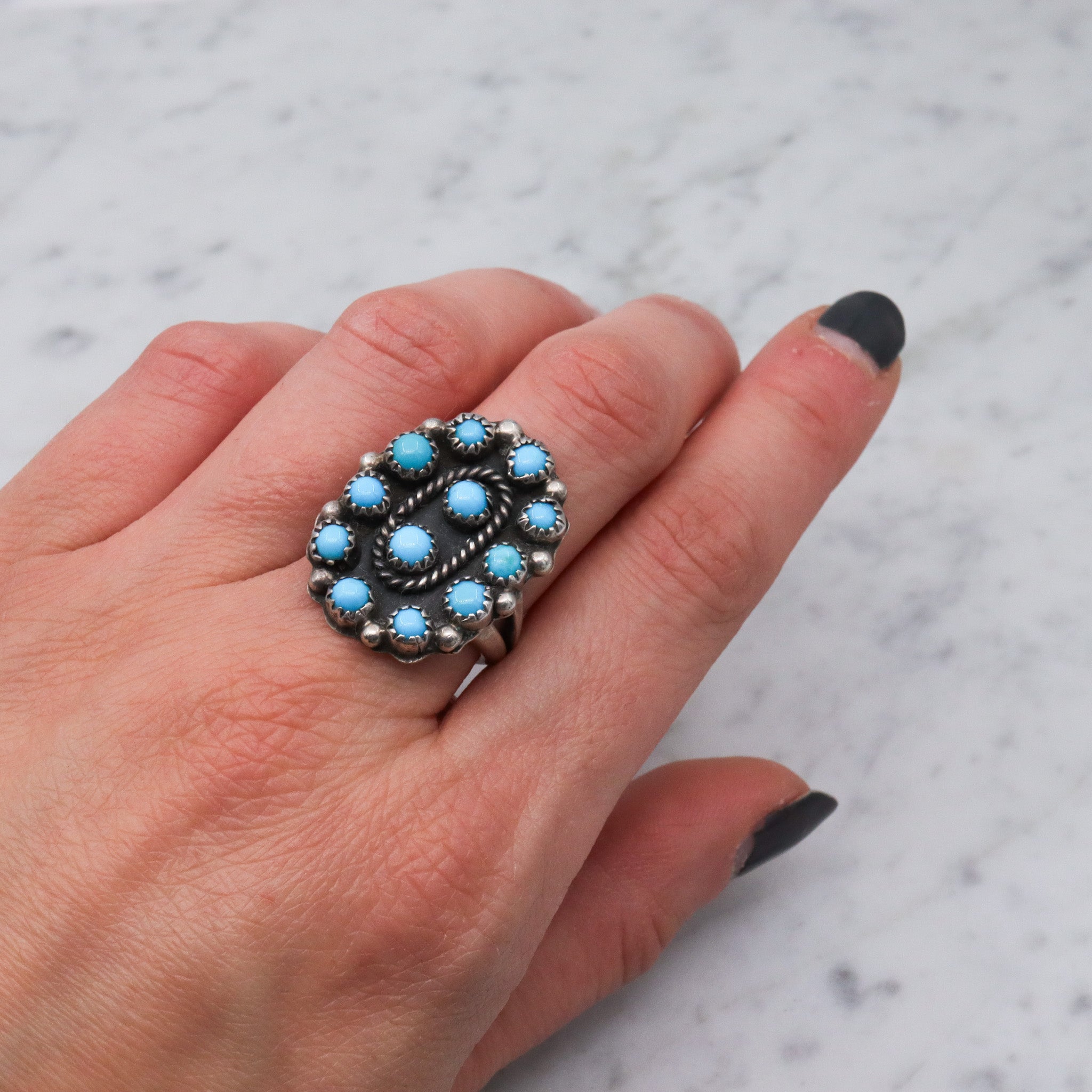 Vintage Navajo petite point sterling silver turquoise ring, sz 8