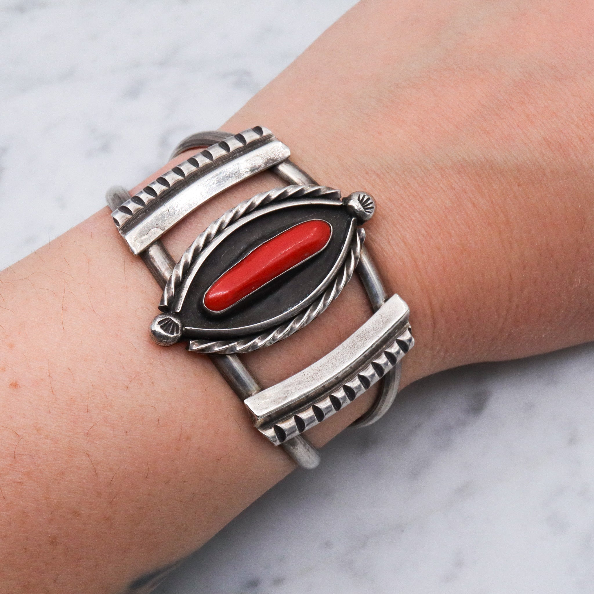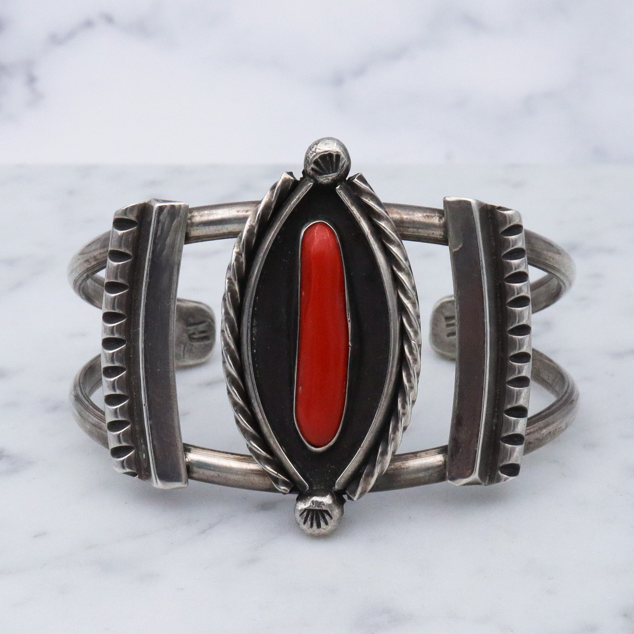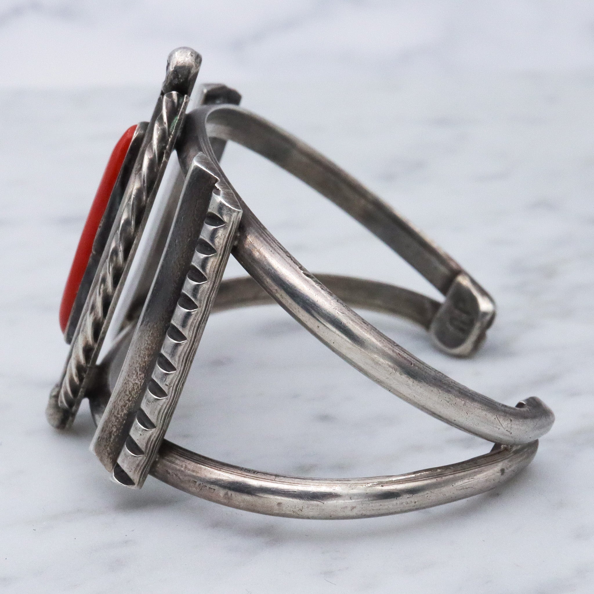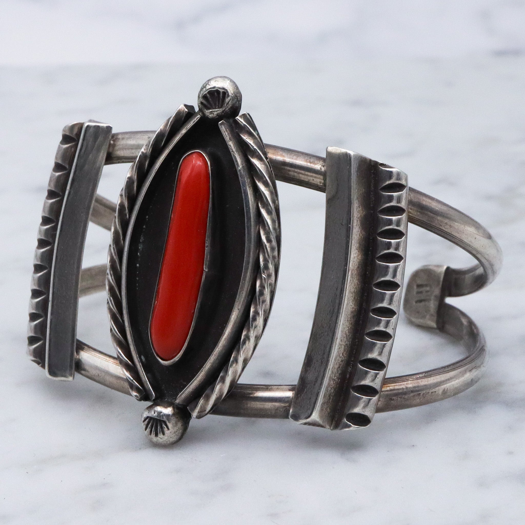 Vintage Navajo coral and sterling silver cuff bracelet