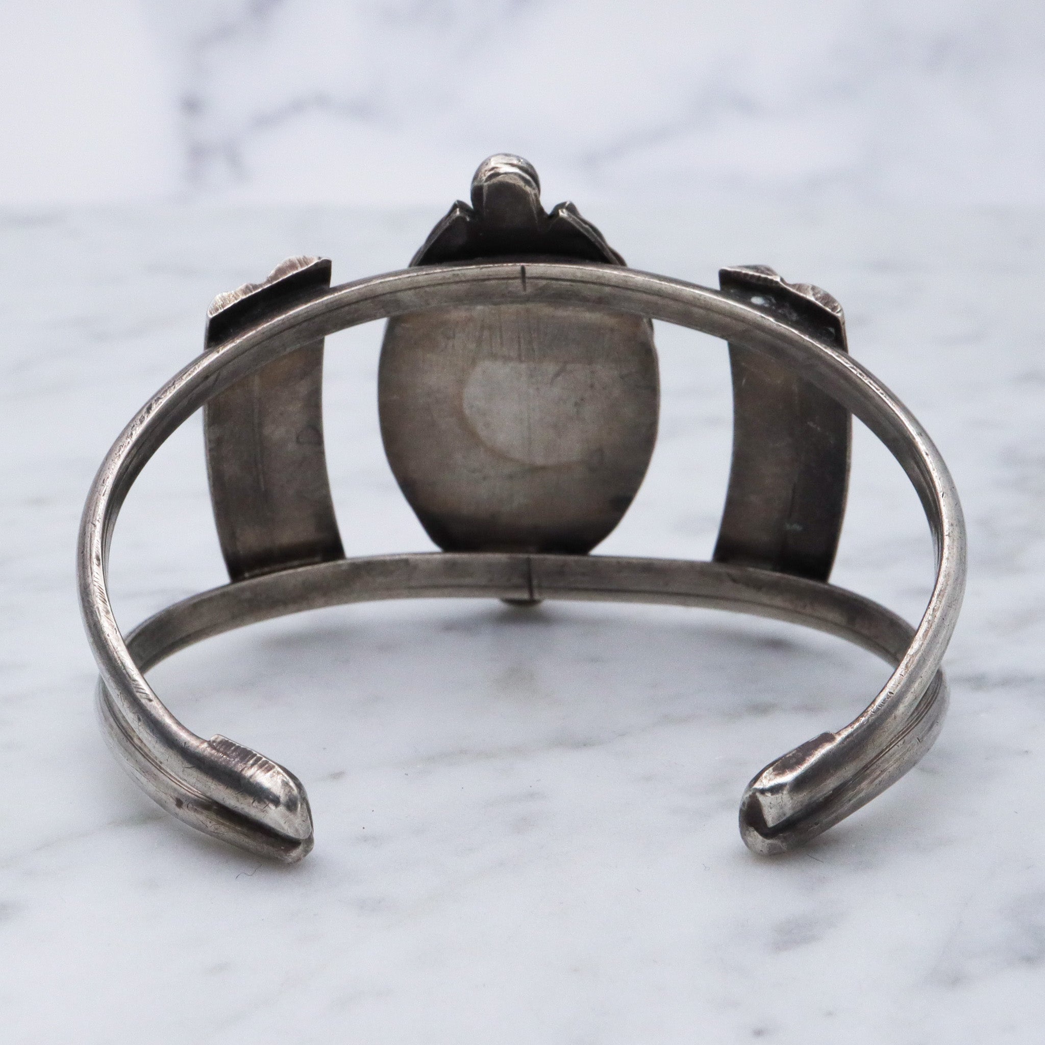 Vintage sterling silver & copper cuff bracelet with cats eye cabochon