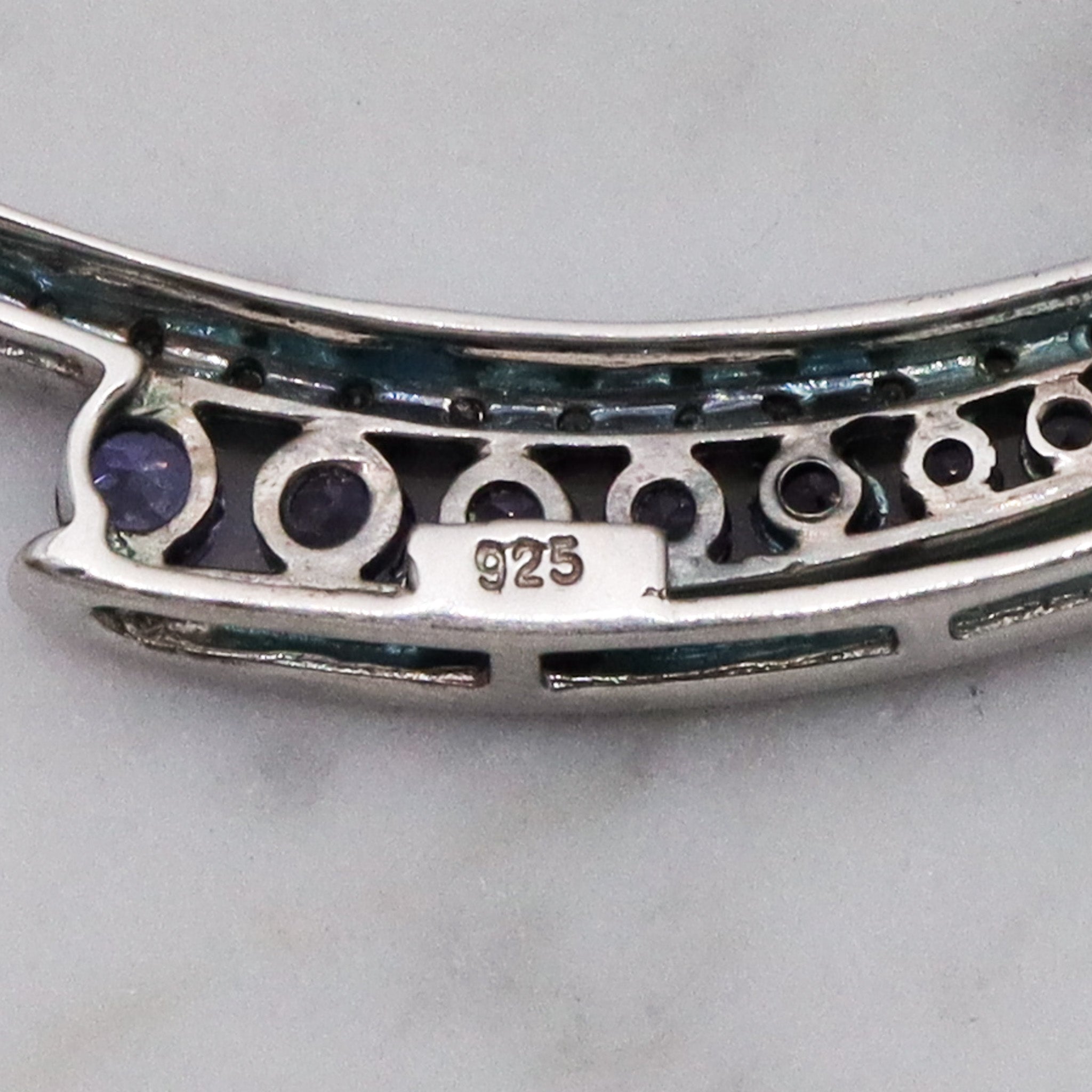 Retro sterling silver tanzanite & diamond pendant necklace