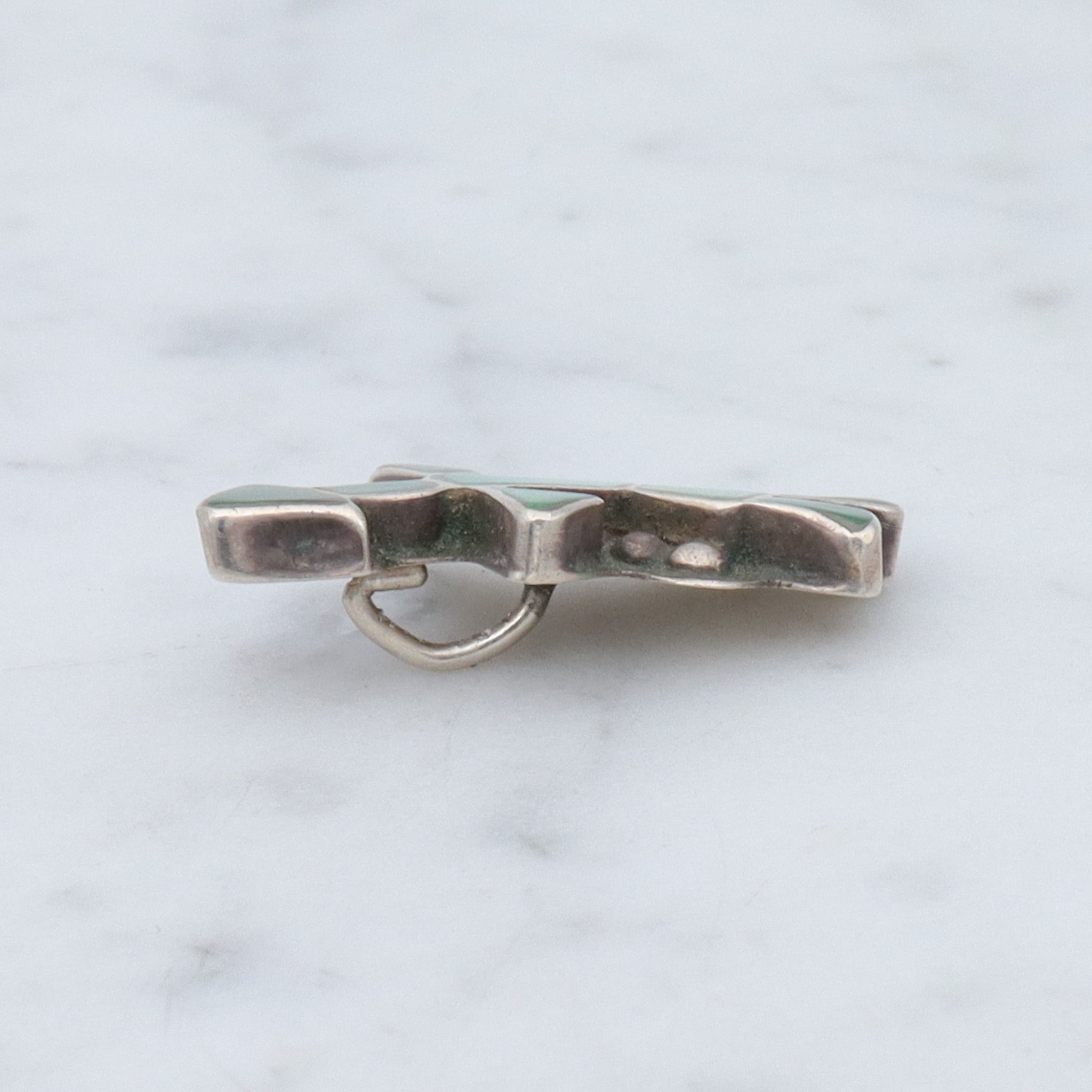 Vintage Zuni sterling green turquoise inlay Kachina Dancer pendant