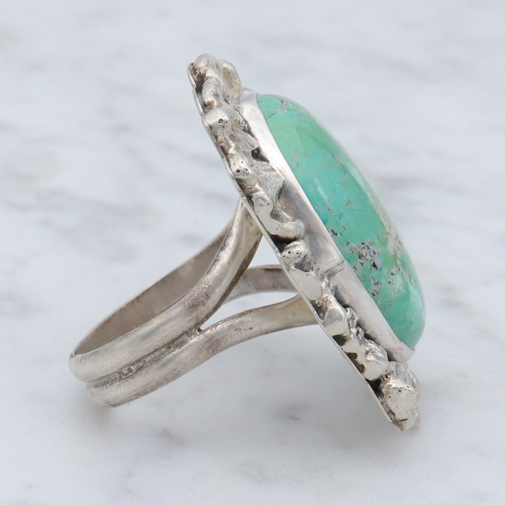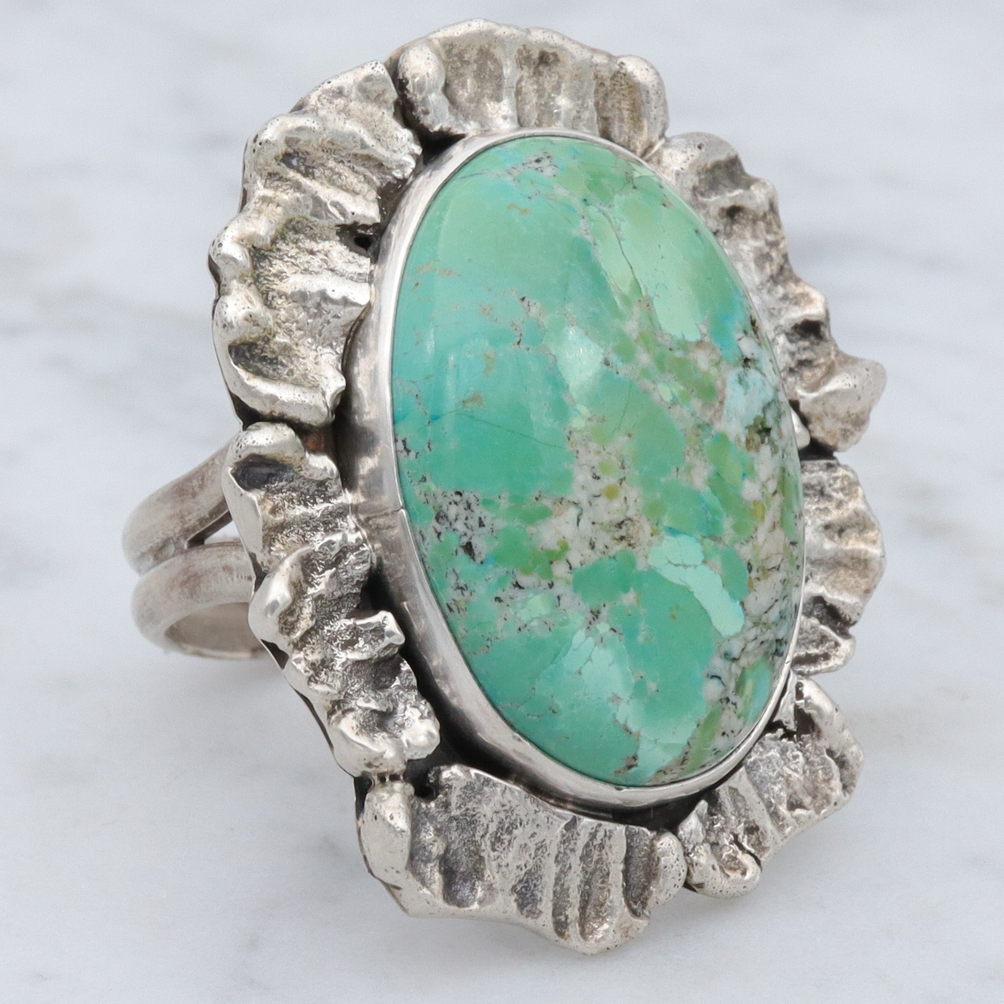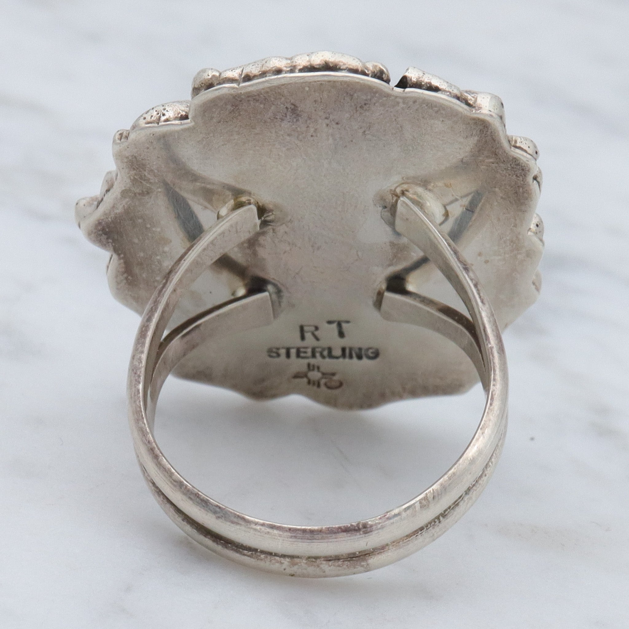 Vintage Navajo Brutalist sterling silver & turquoise ring by Ronald Tom, sz 10