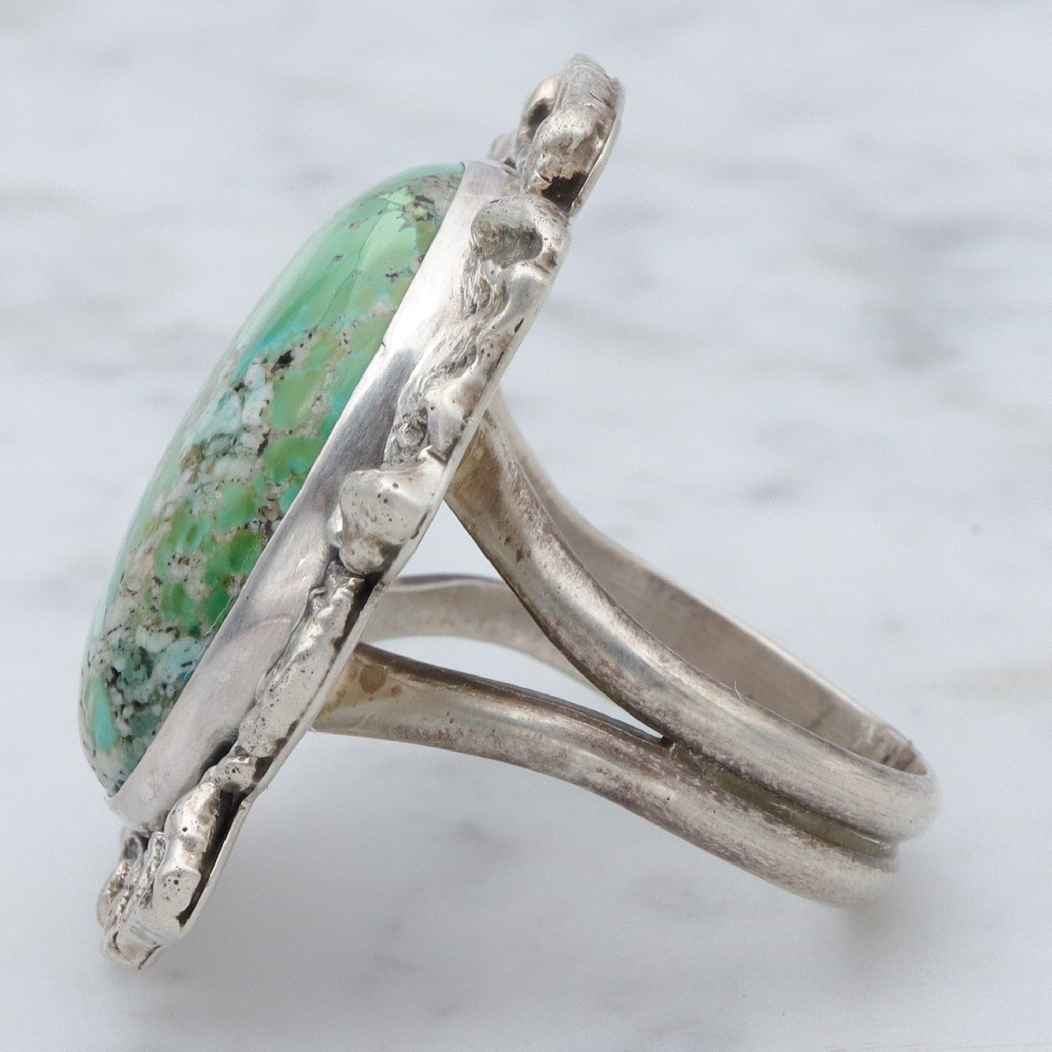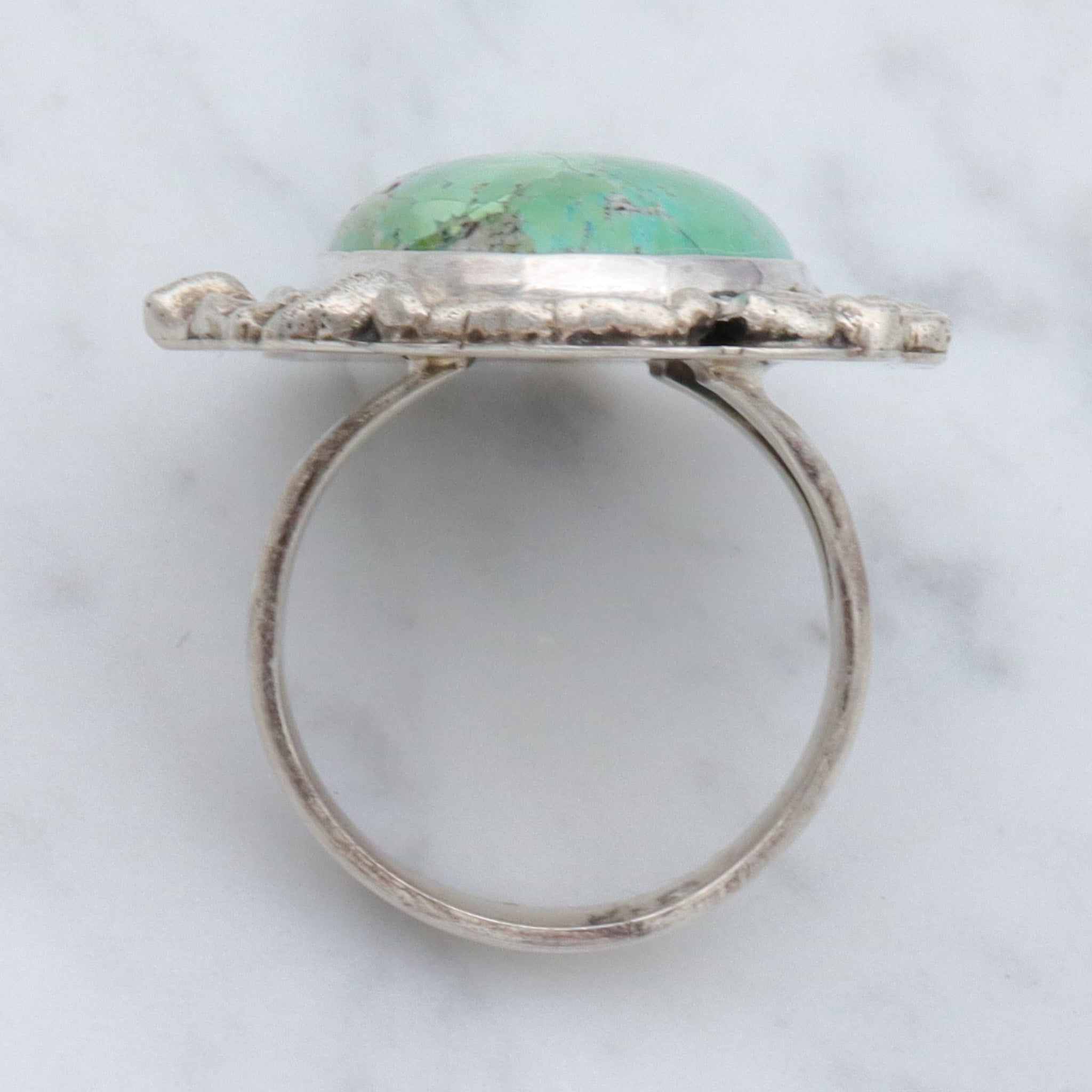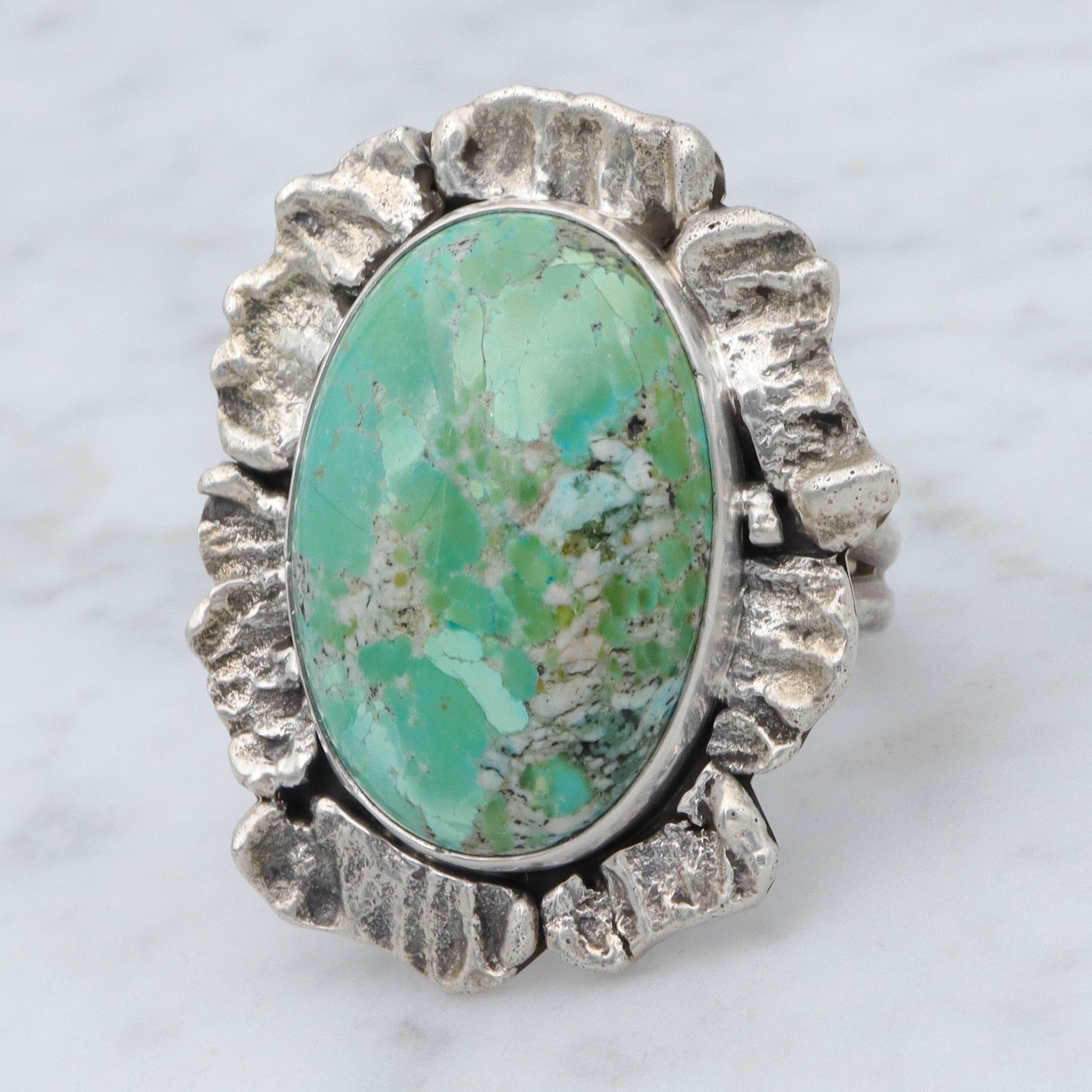 Vintage Navajo Brutalist sterling silver & turquoise ring by Ronald Tom, sz 10