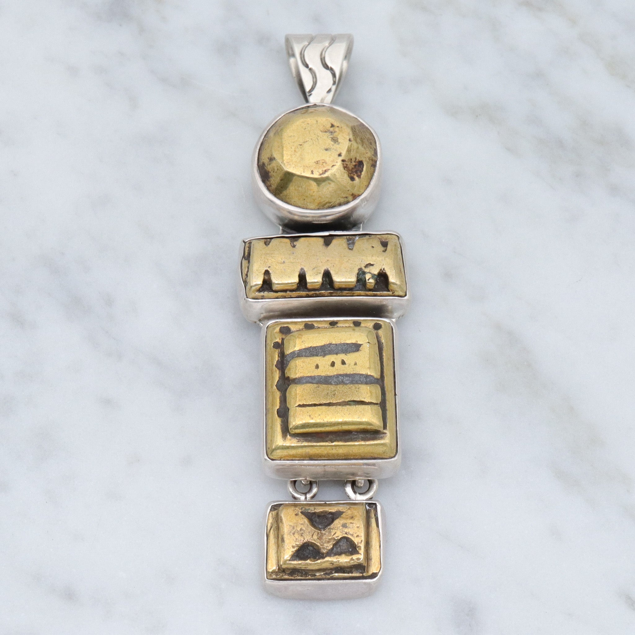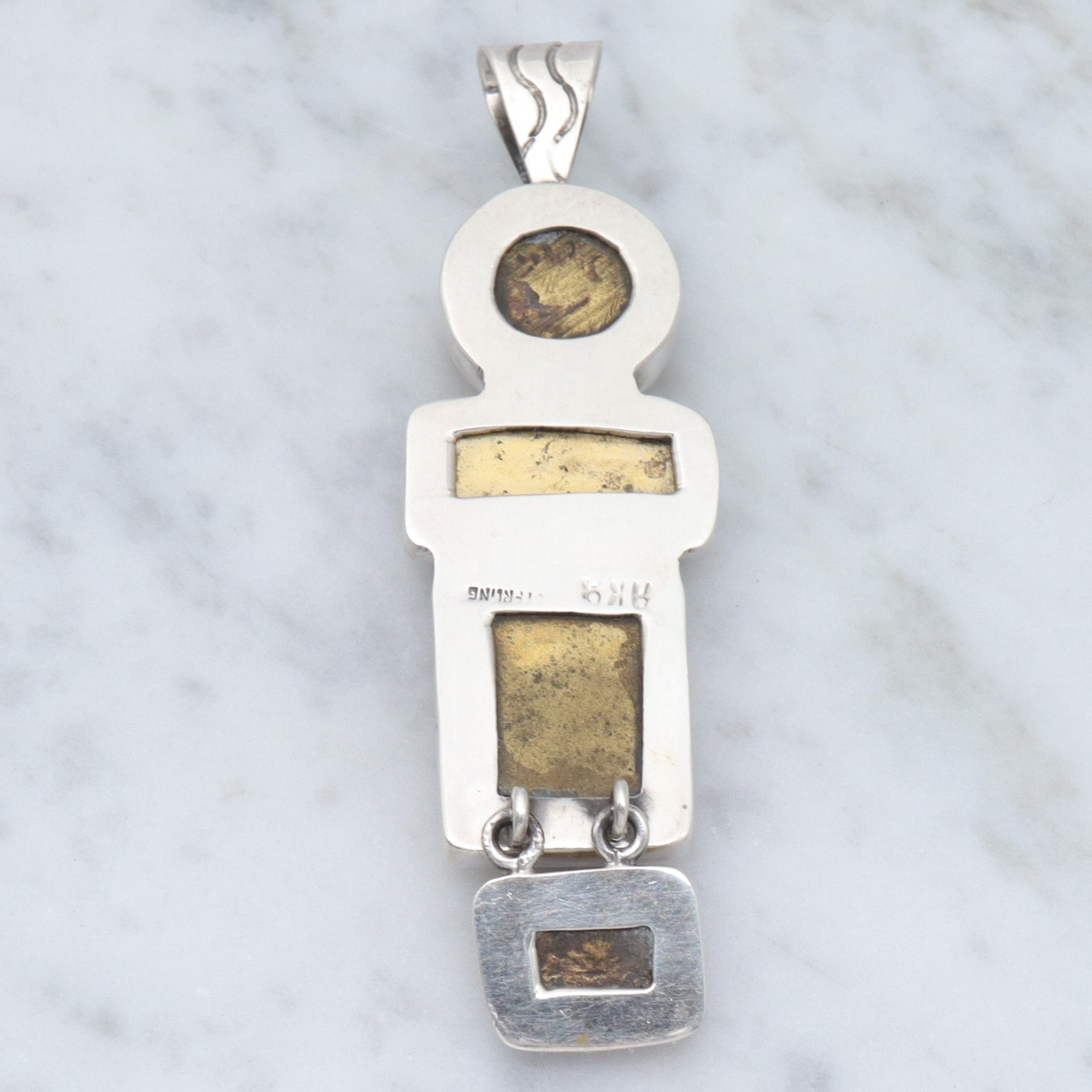 Retro Amy Kahn Russel sterling & carved pyrite pendant