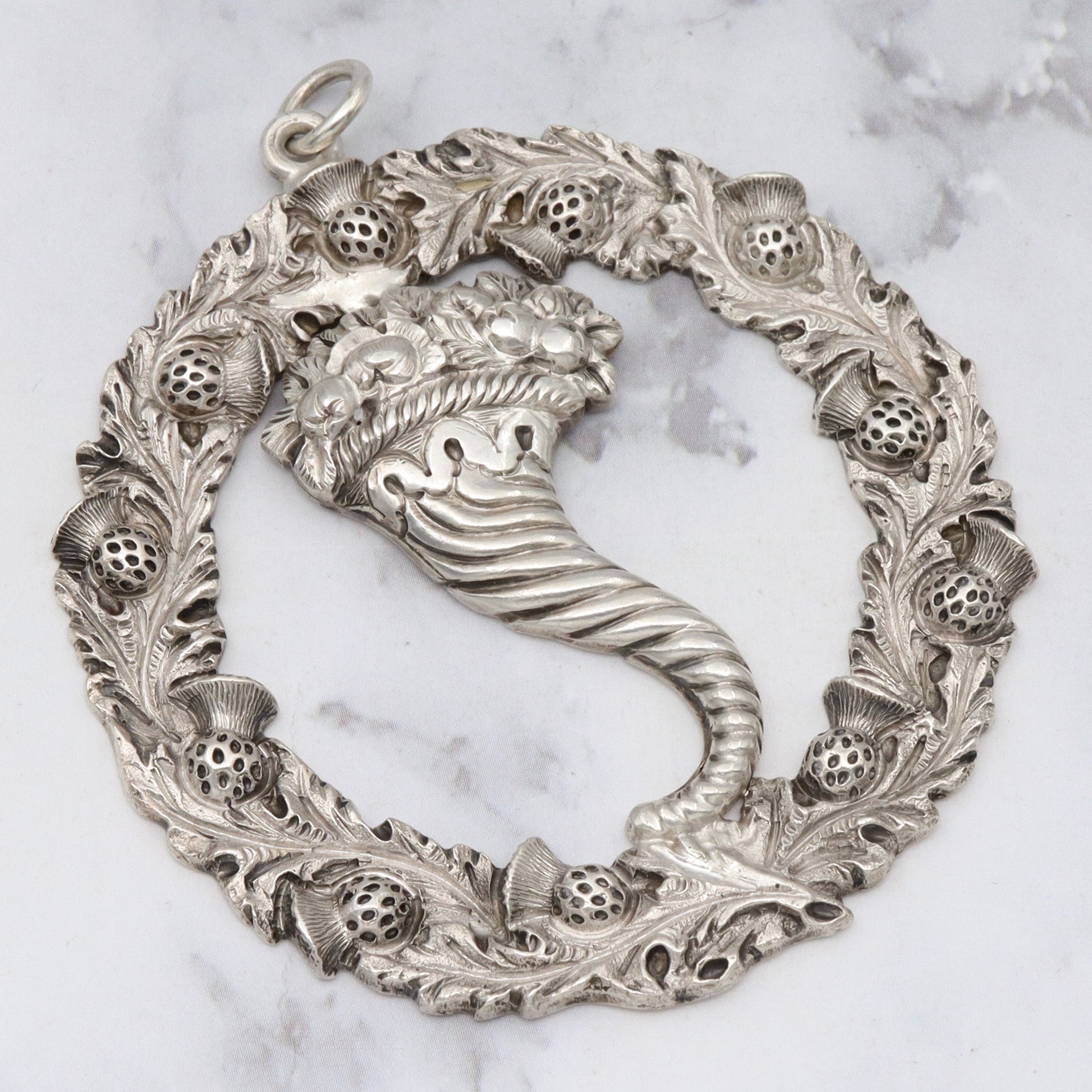 1895 Glasgow, Scotland large sterling thistle & Cornucopia pendant