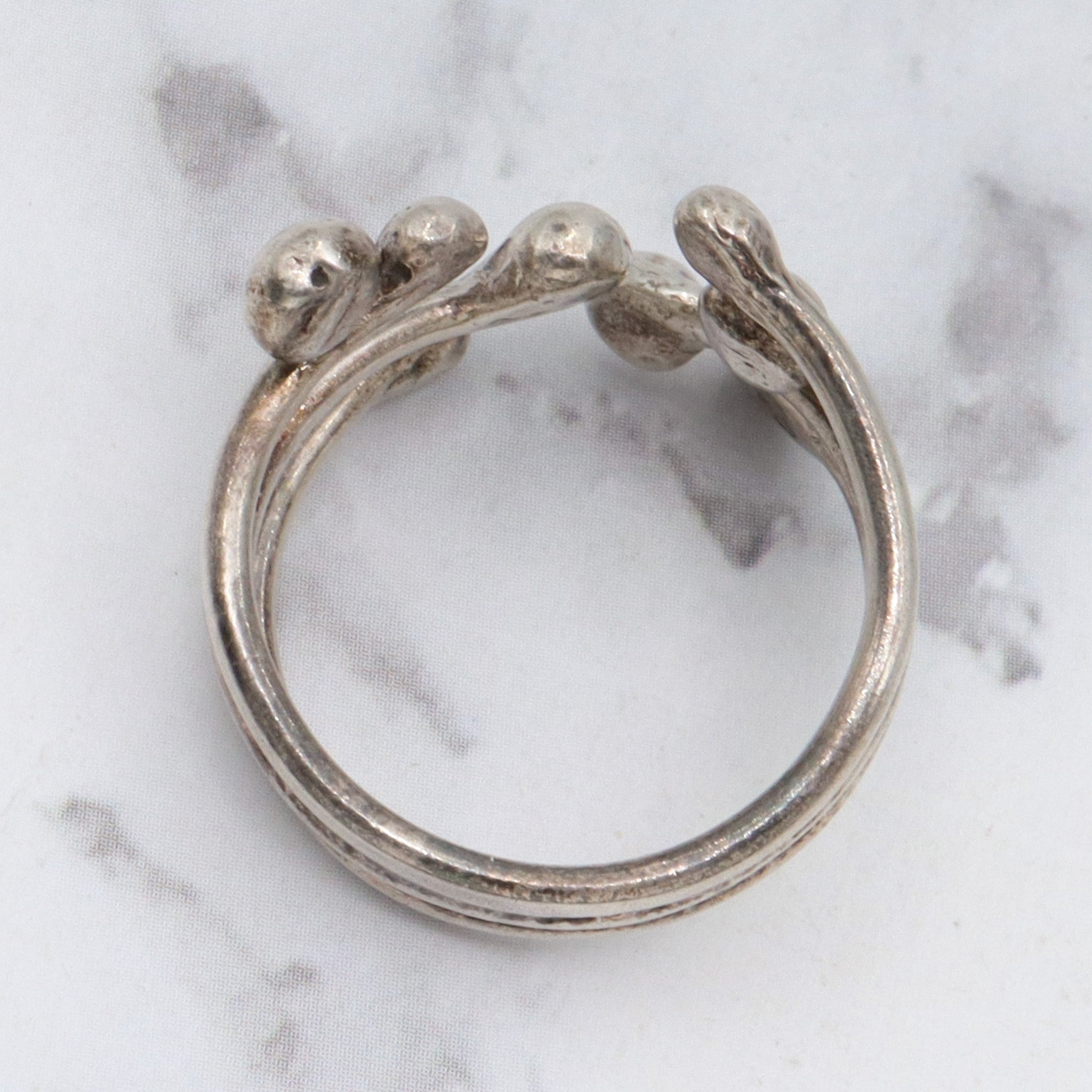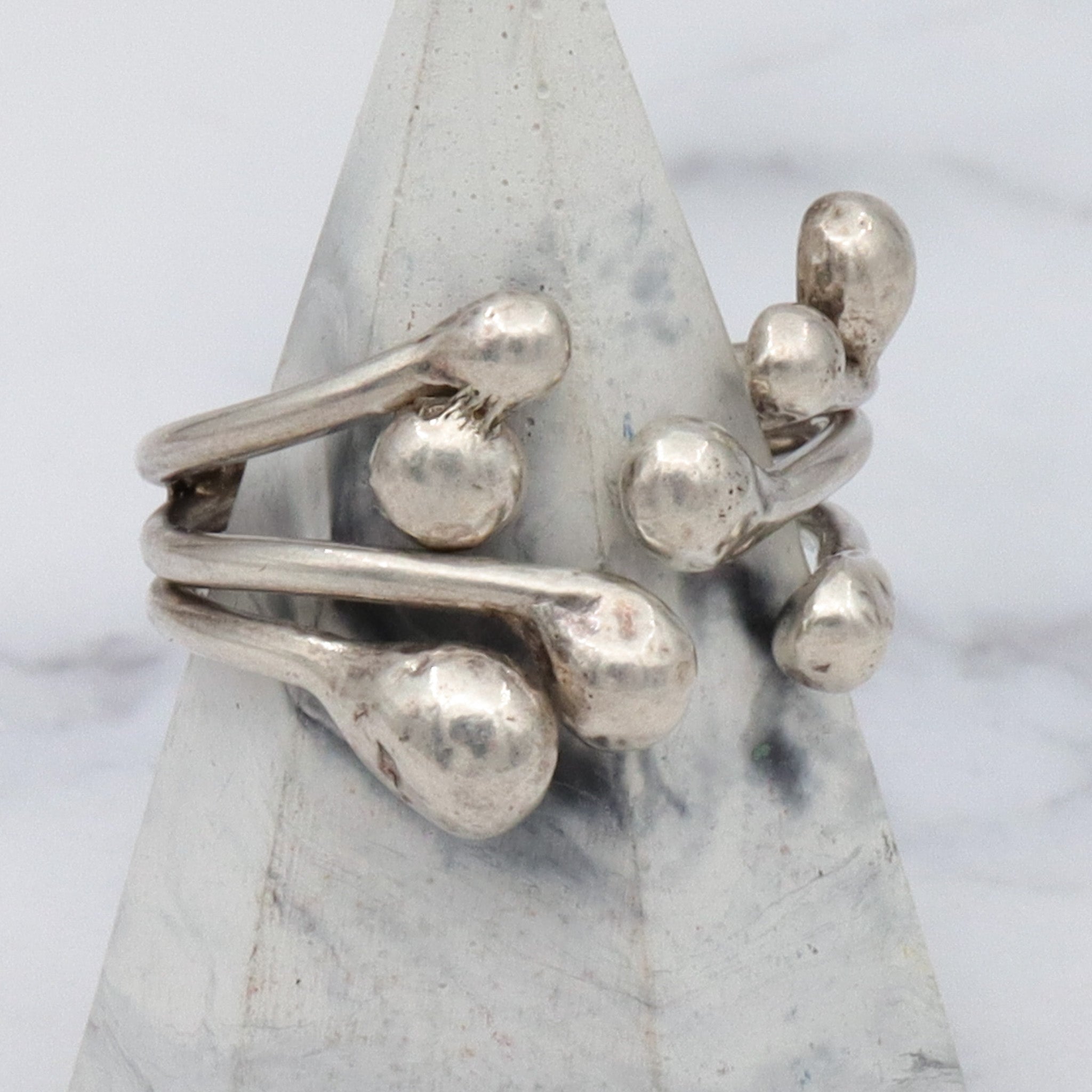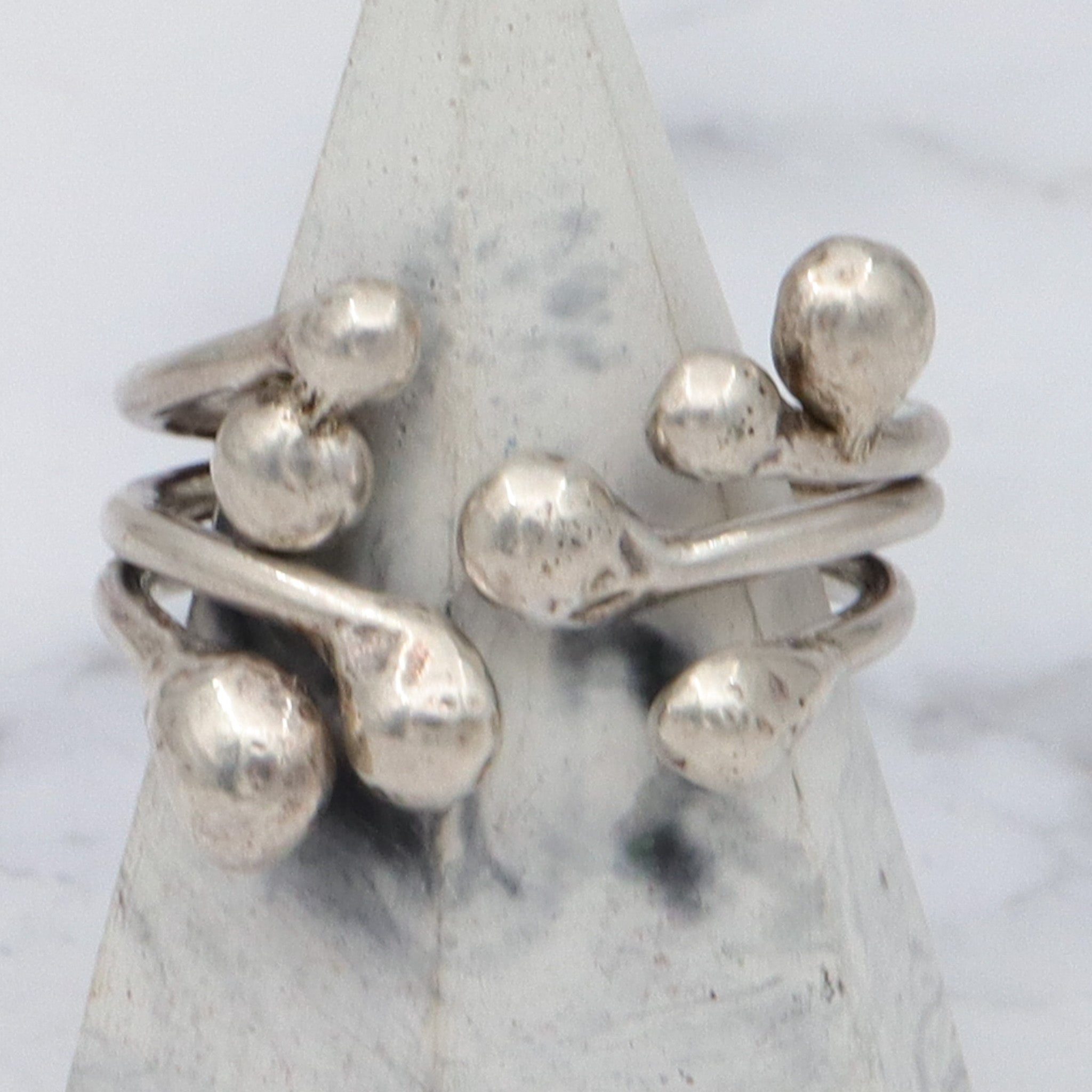 Vintage German modernist 835 silver coral beads signed adjustable ring, sz 8.5