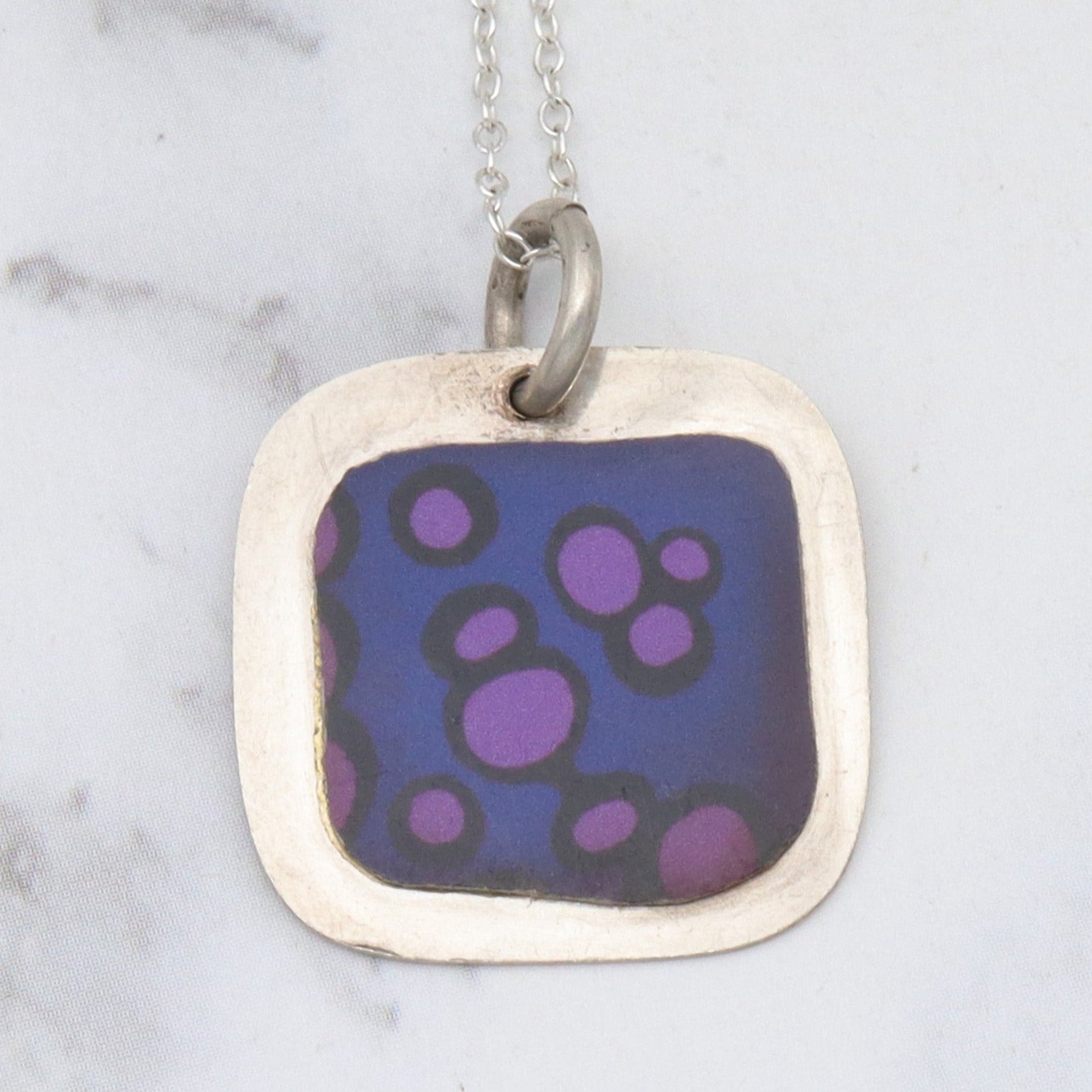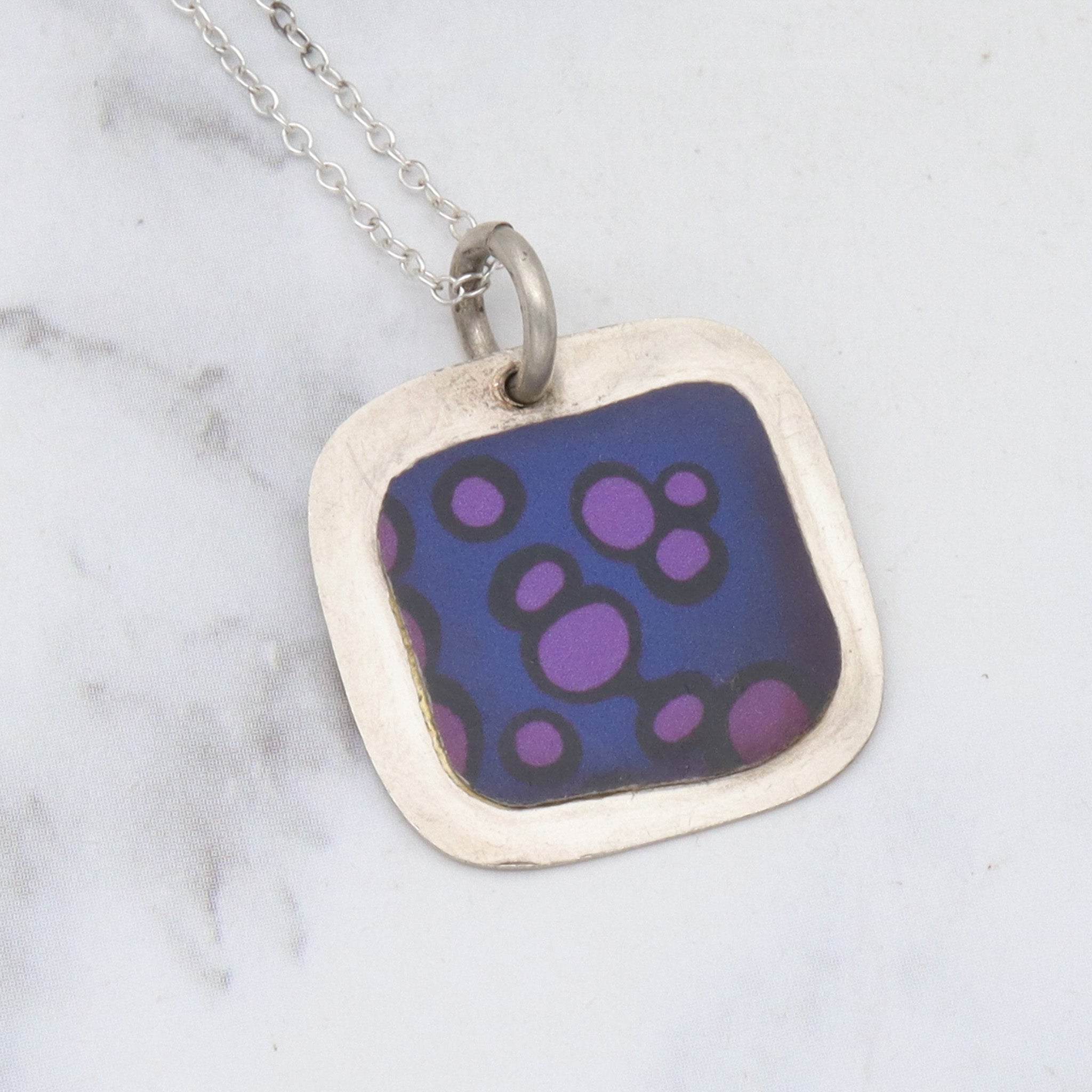 Vintage handmade 90’s sterling enamel tile pendant necklace