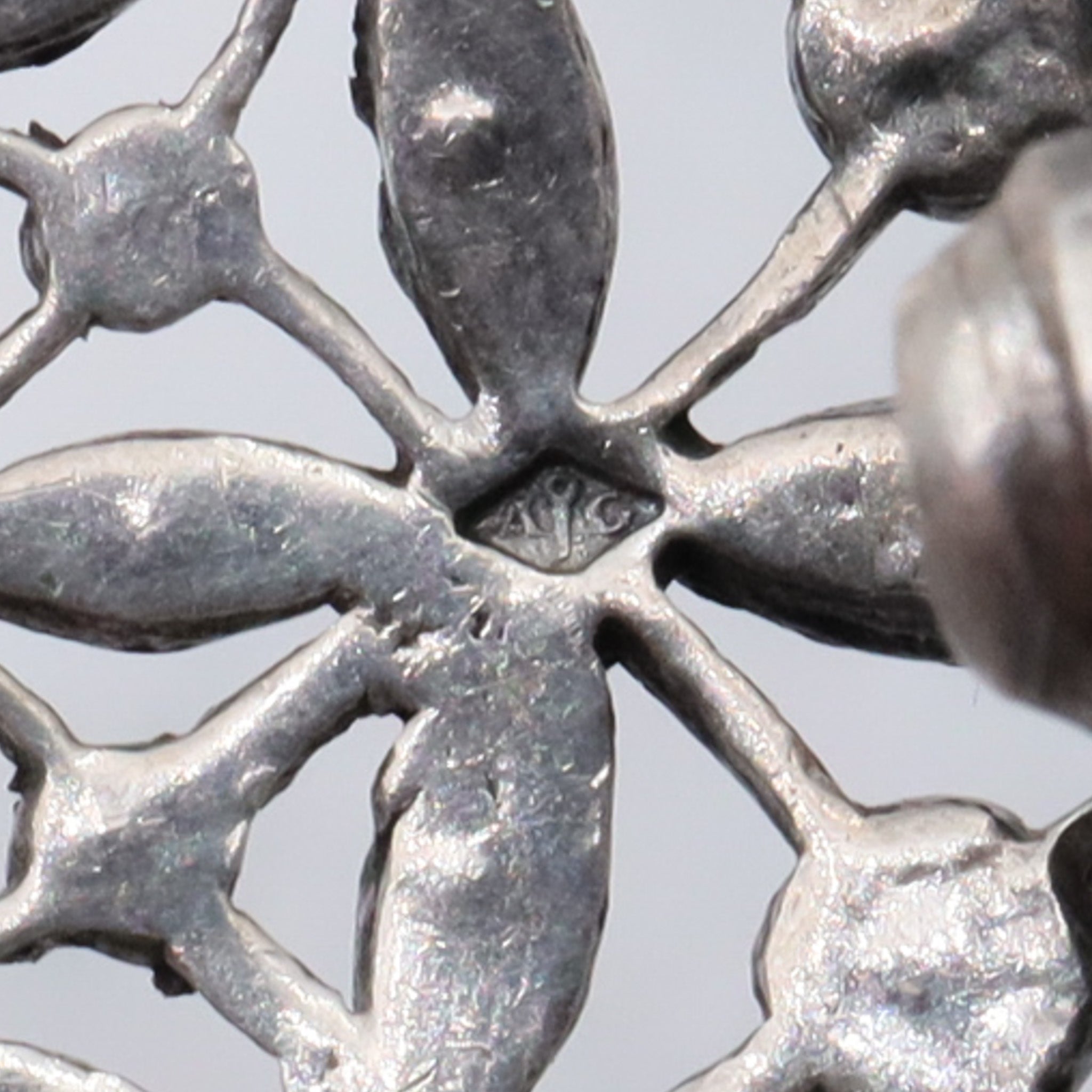 Antique French Art Deco .900 silver & paste filigree circle brooch by Andre Godefroy