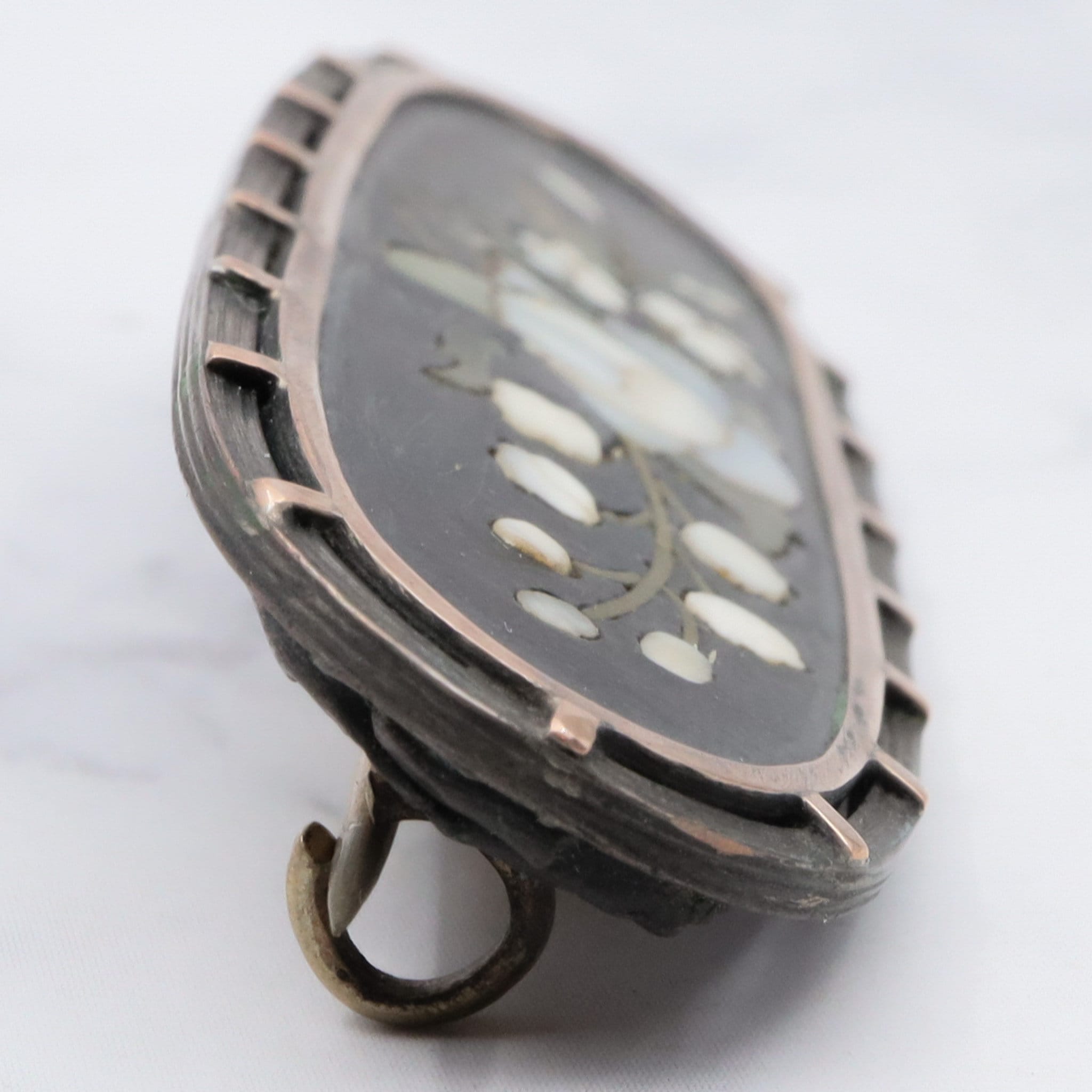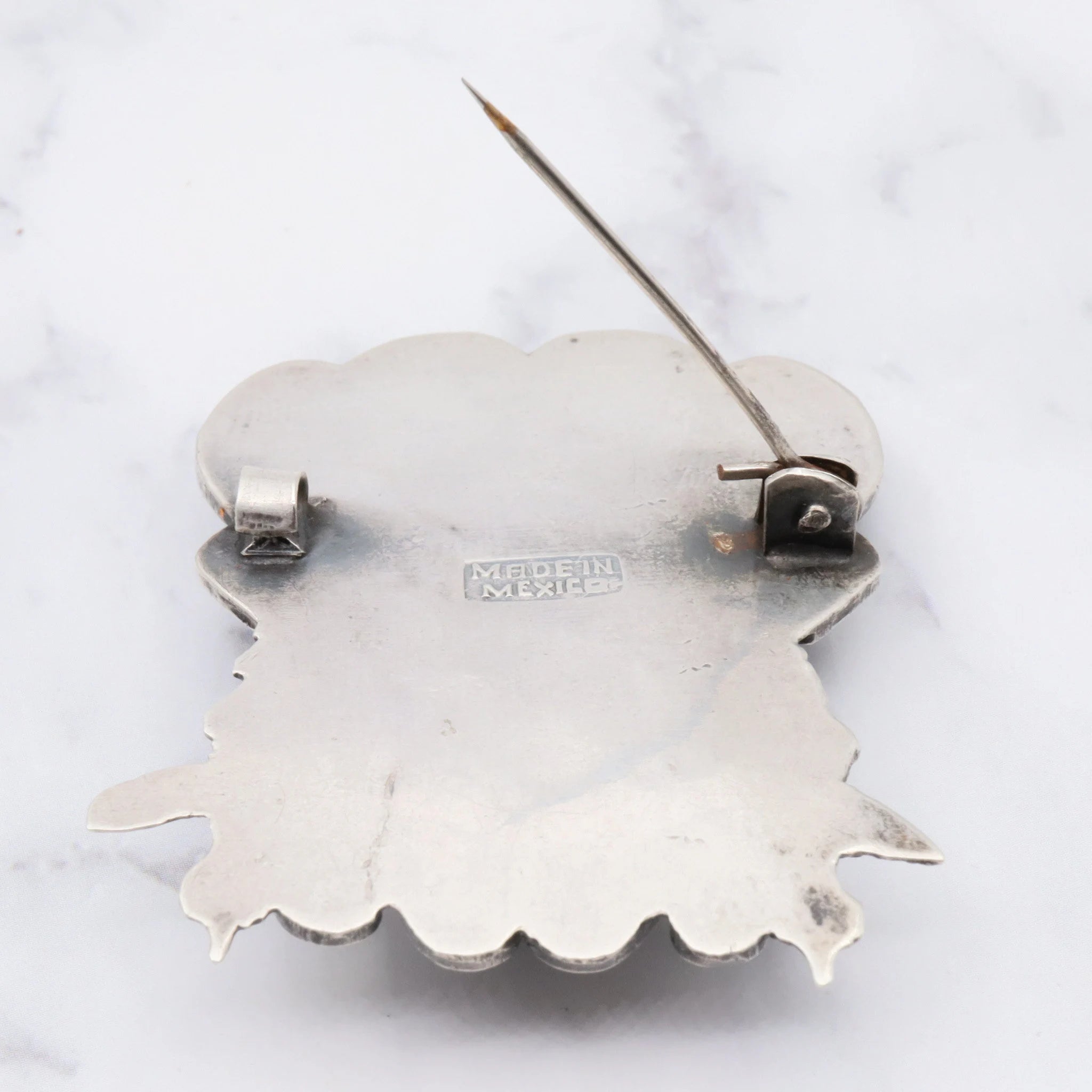 Antique Mexican sterling and carved onyx Mayan mask brooch