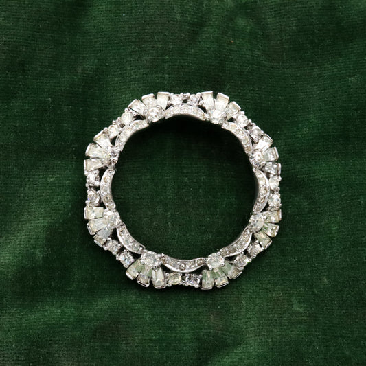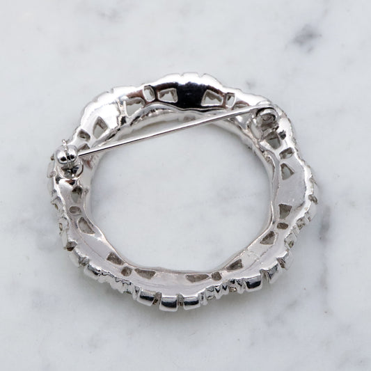 Art Deco Revival Jomaz rhodium plated rhinestone open wreath brooch