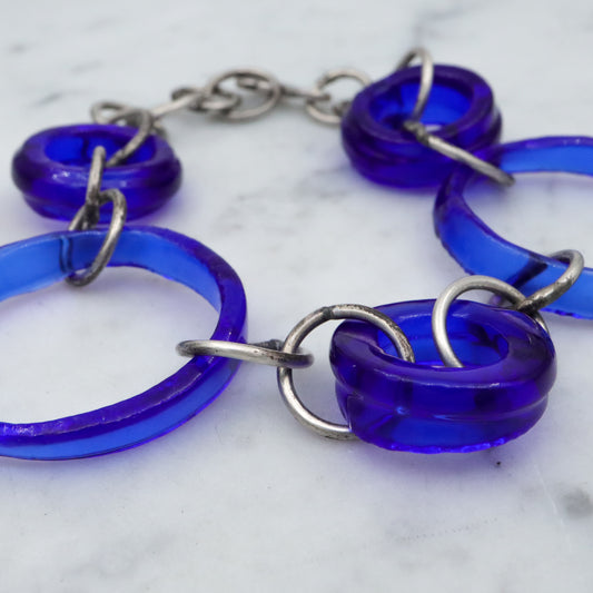 Vintage silver & glass bottle ring link bracelet