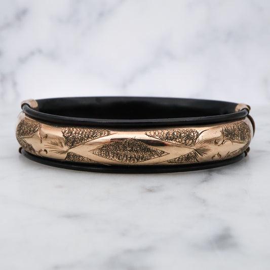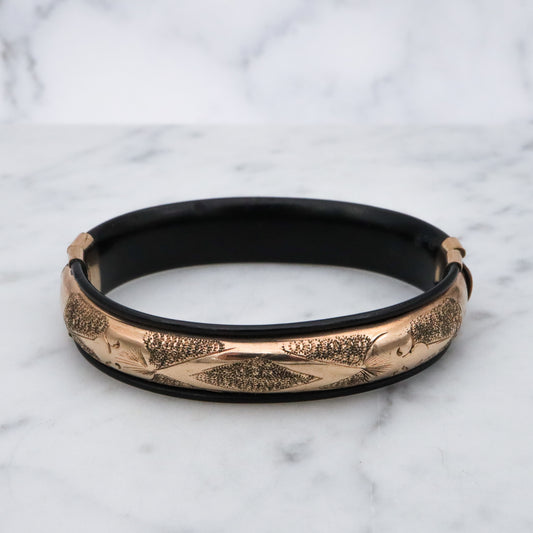 Antique Victorian gold filled etched & black lacquered stretch bangle