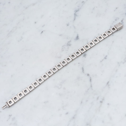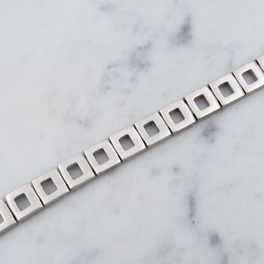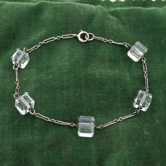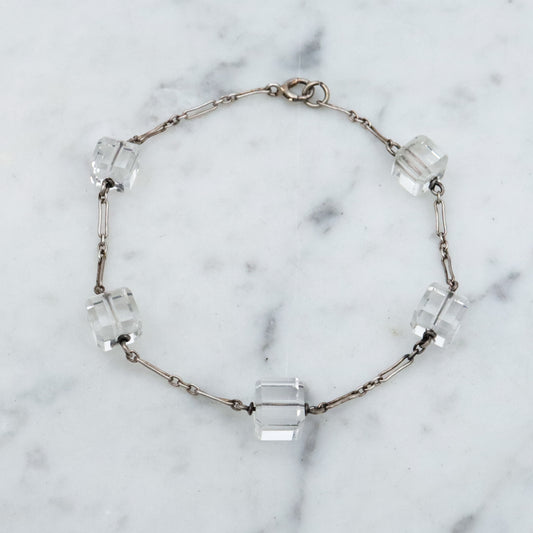 Antique Art Deco rock crystal block bead sterling link bracelet