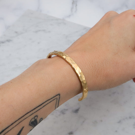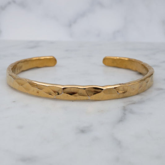 Retro handmade gold plated hammered sterling cuff bracelet