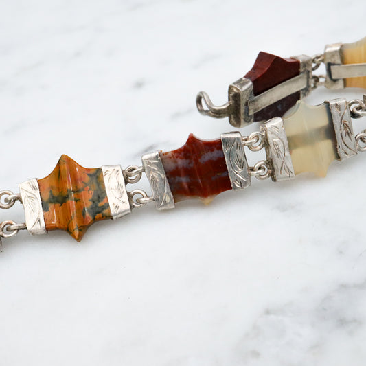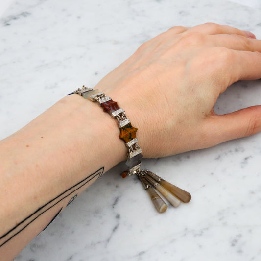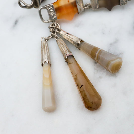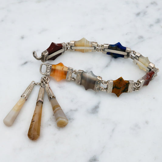 Antique Victorian Scottish Provincial agate link bracelet w/agate torpedo drops