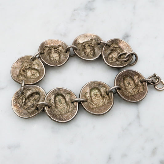 Antique 1940s silver Mercury dime pop out Liberty coin bracelet