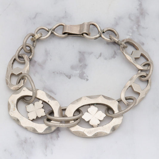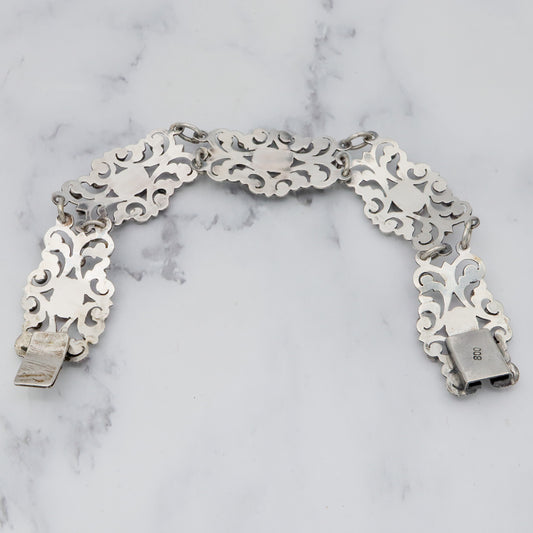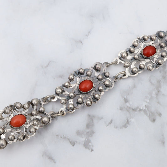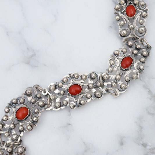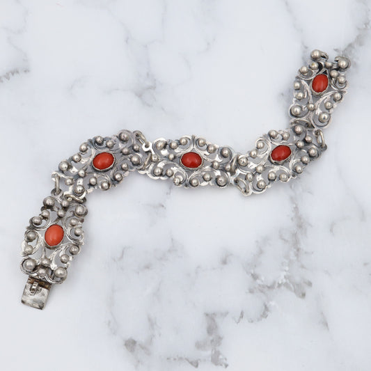 Antique gilt sterling silver filigree with carved coral flower bracelet