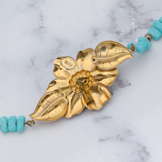 Antique rare J.A. Deknatel & Son Inc. gold washed sterling silver faux turquoise beaded bracelet