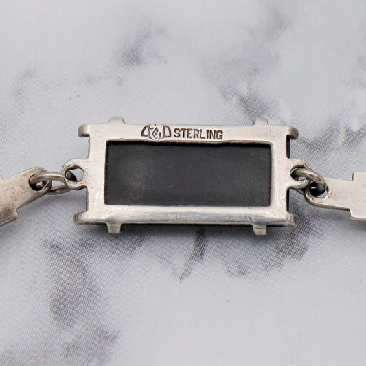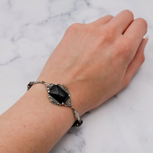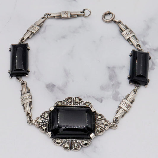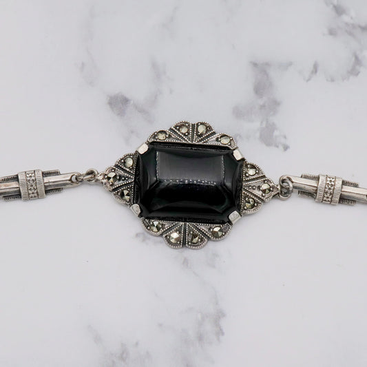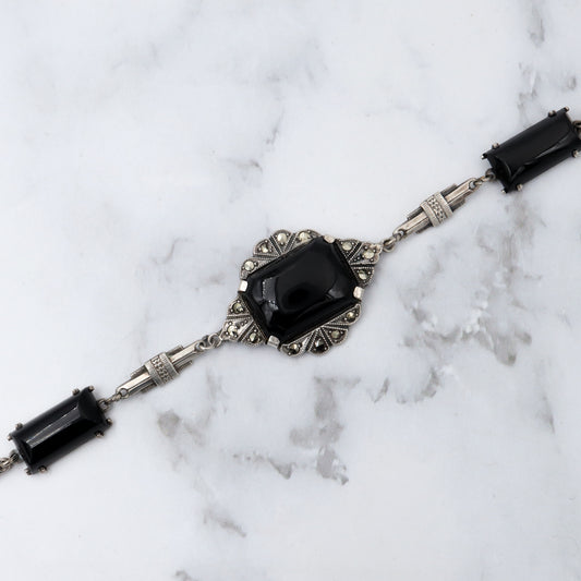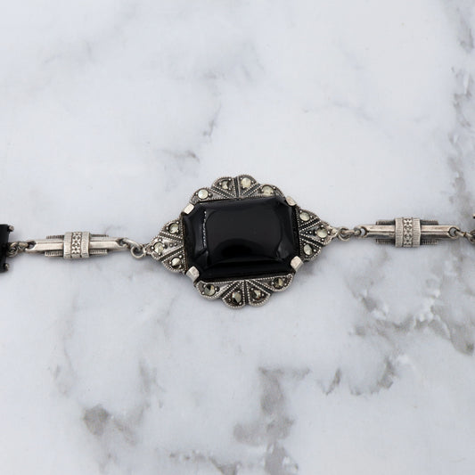 Antique Art Deco sterling, onyx & marcasite bracelet