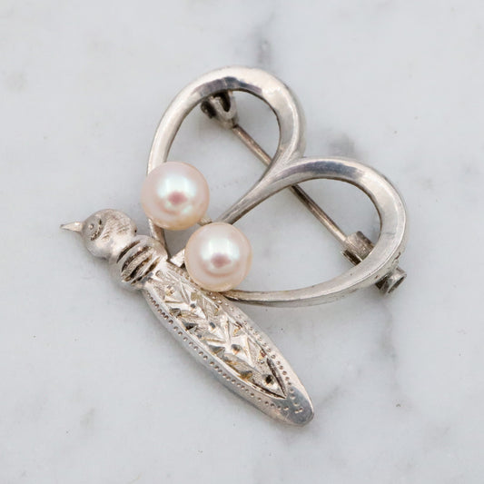 Petite Mid Century sterling & pearl butterfly brooch