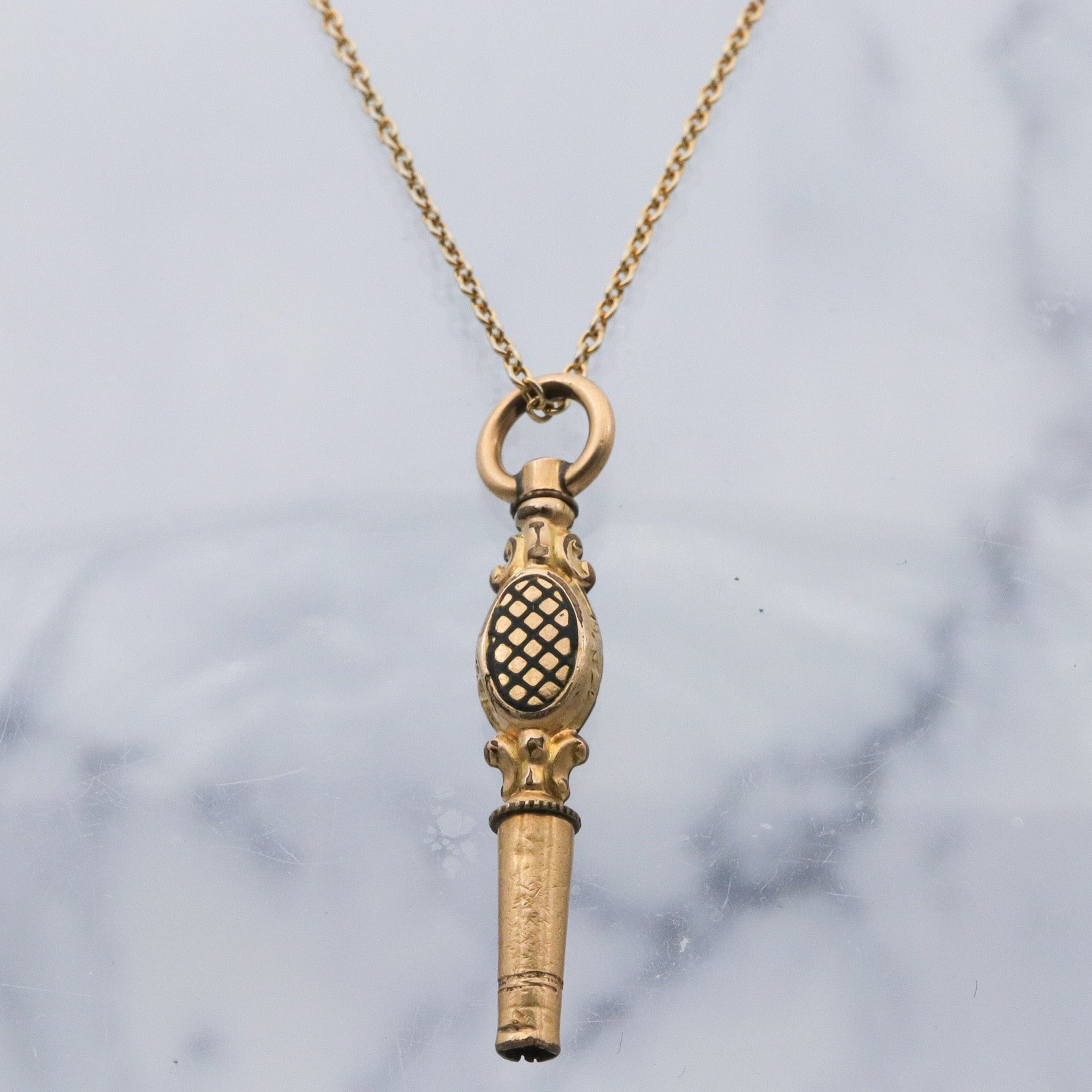 Antique Victorian gold filled black enamel watch key fob