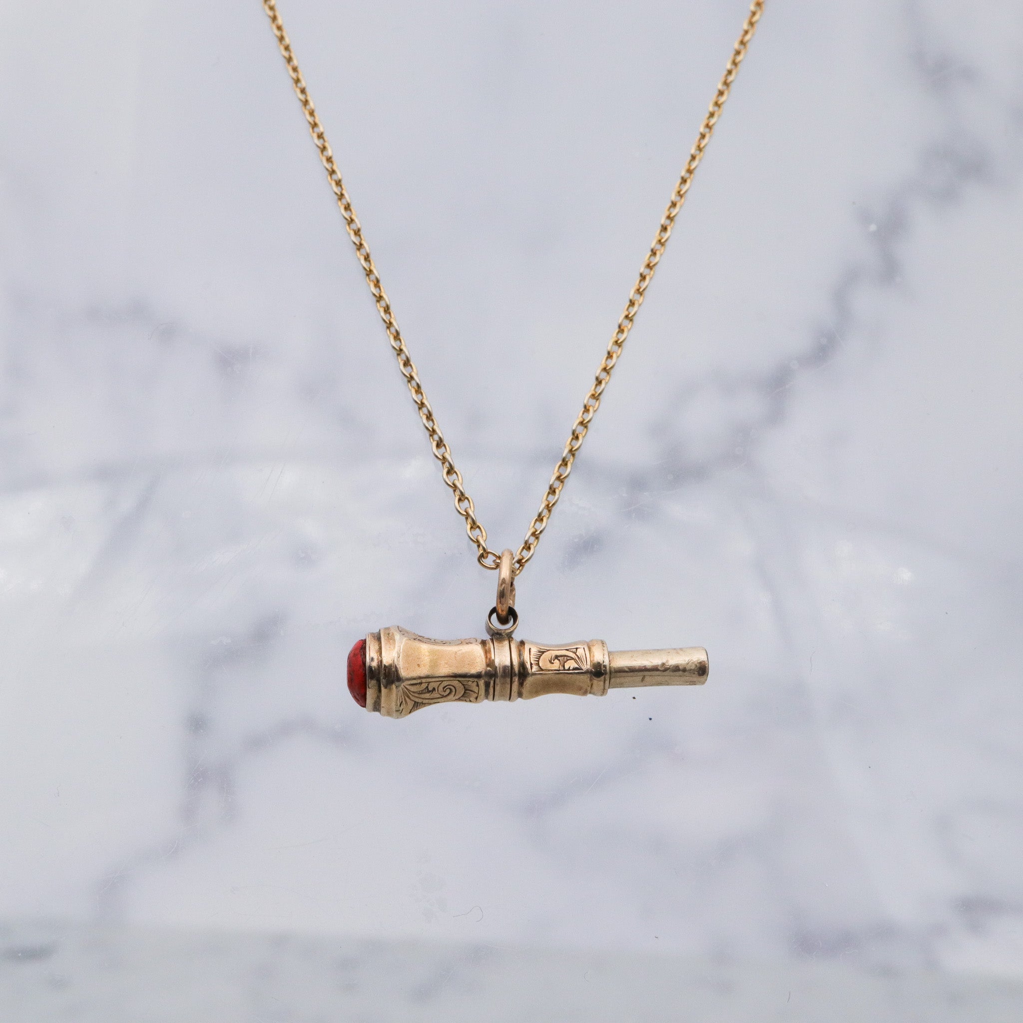Antique Victorian 10k gold watch key fob with red stone end