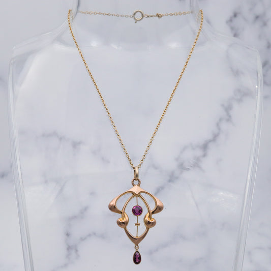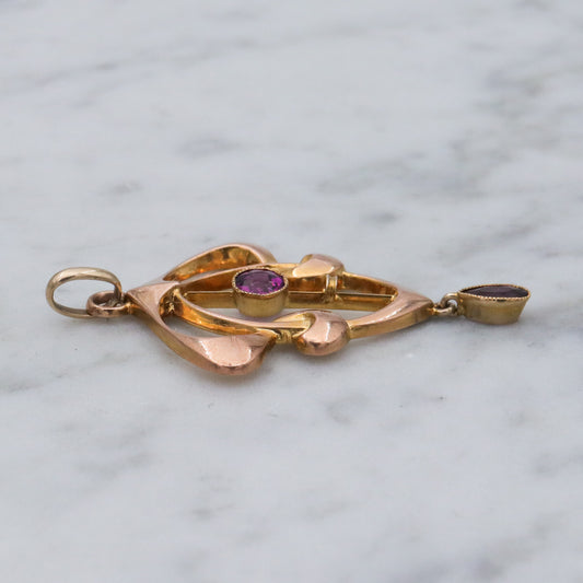 Antique Art Nouveau English 9k gold rhodolite garnet pendant