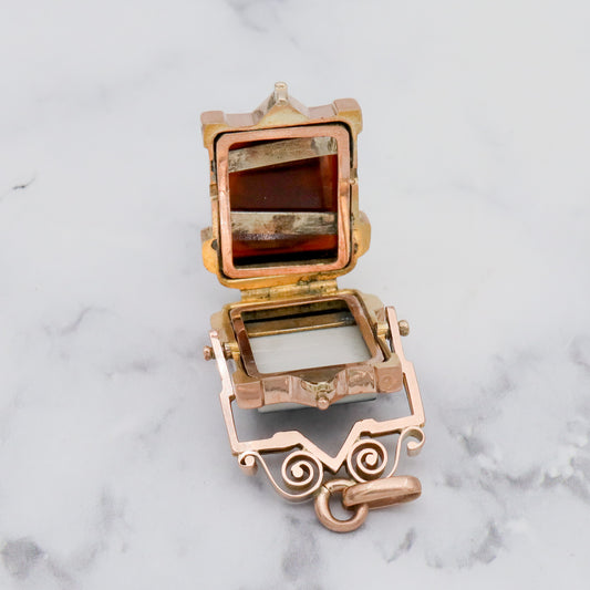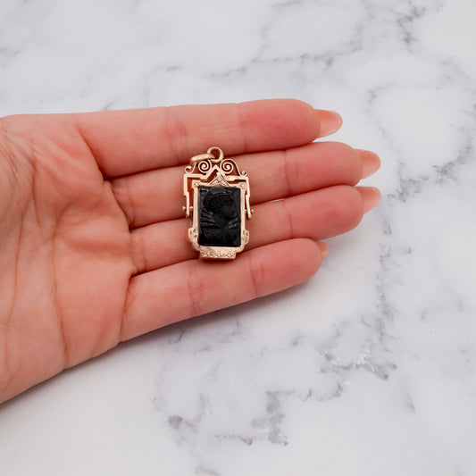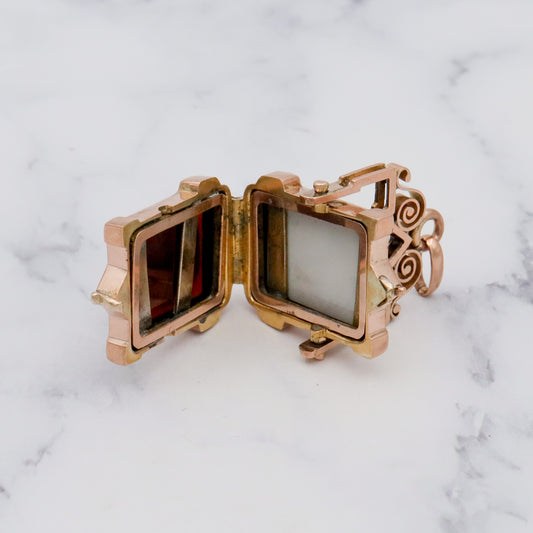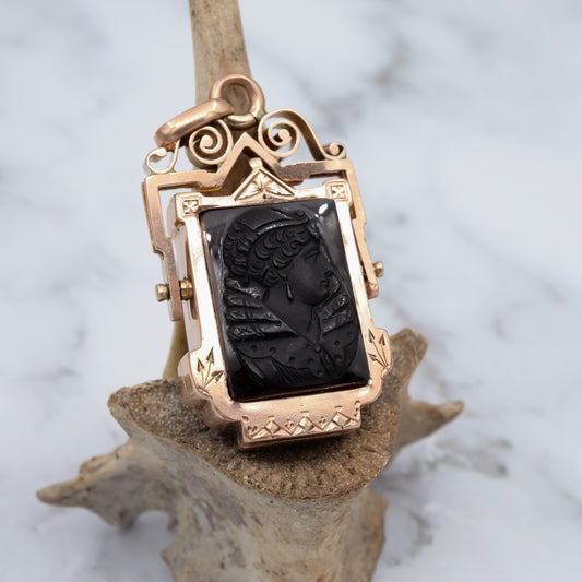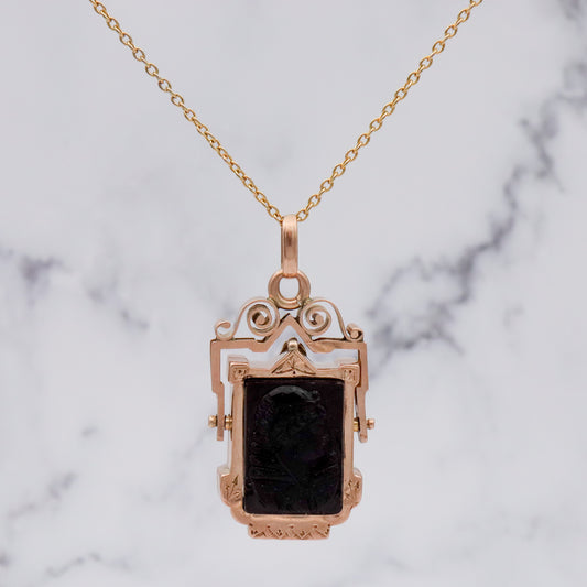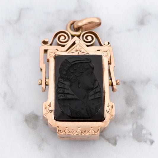Antique Aesthetic Period 14k gold Queen Victoria hardstone carved cameo double sided flip locket pendant