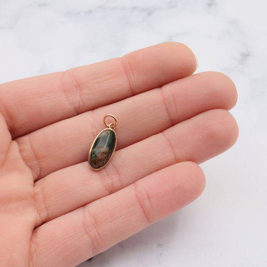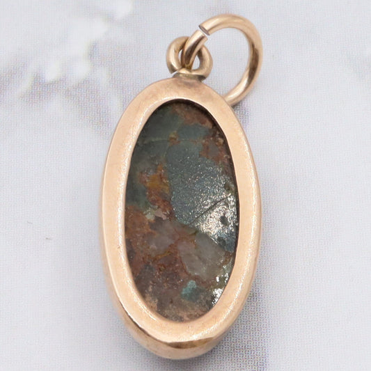 Antique victorian 10K gold green turquoise with quartz inclusions pendant