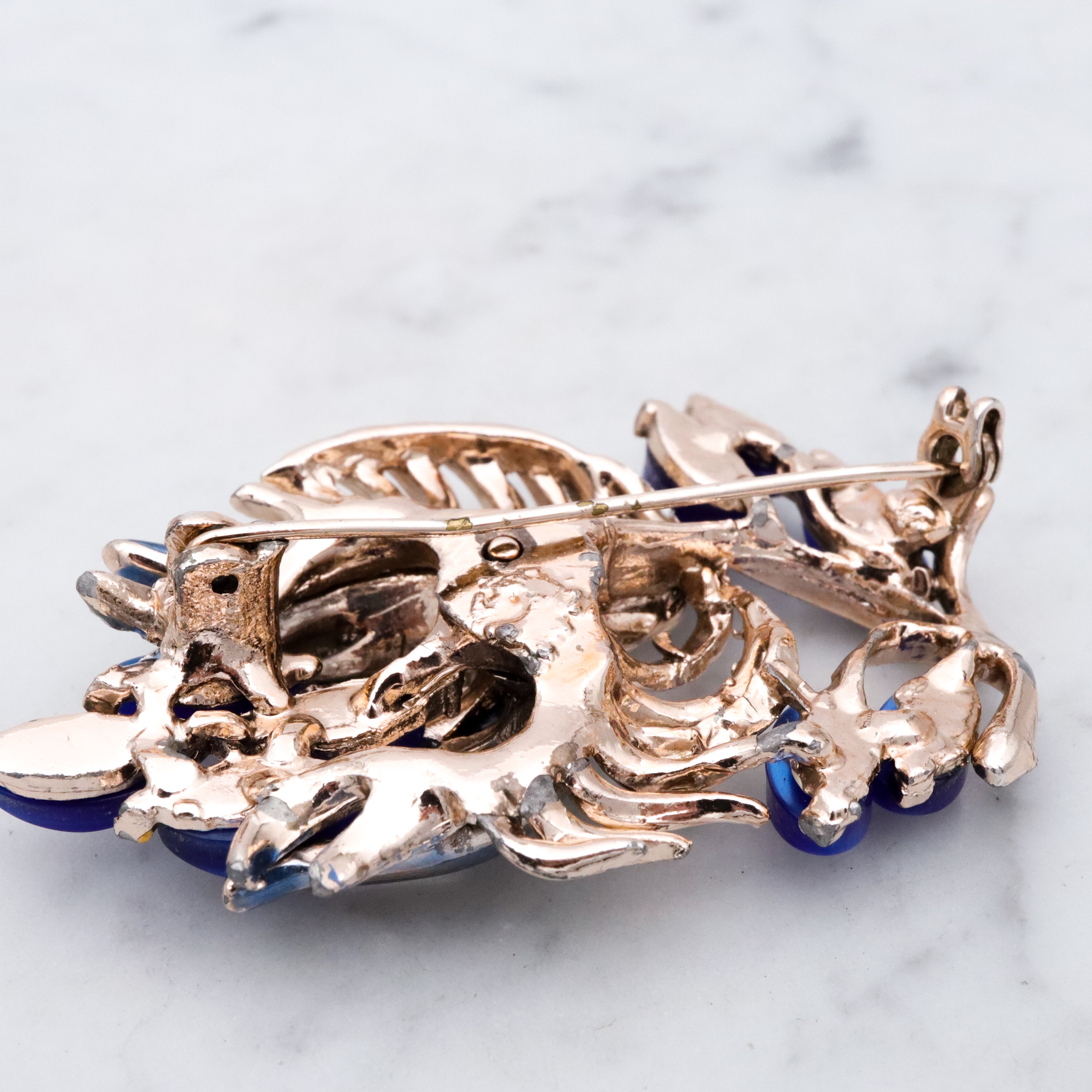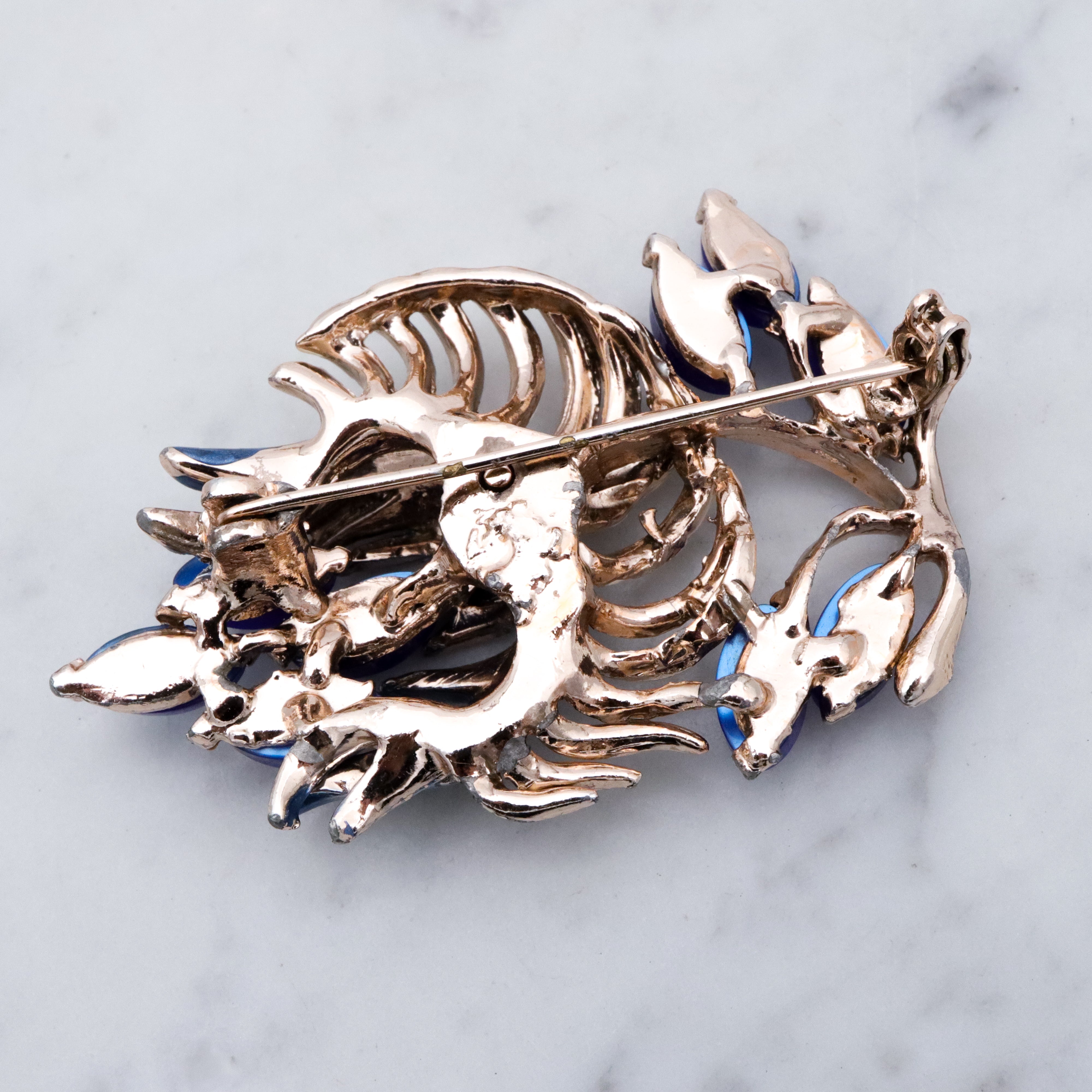 Vintage blue thermoset painted flower brooch