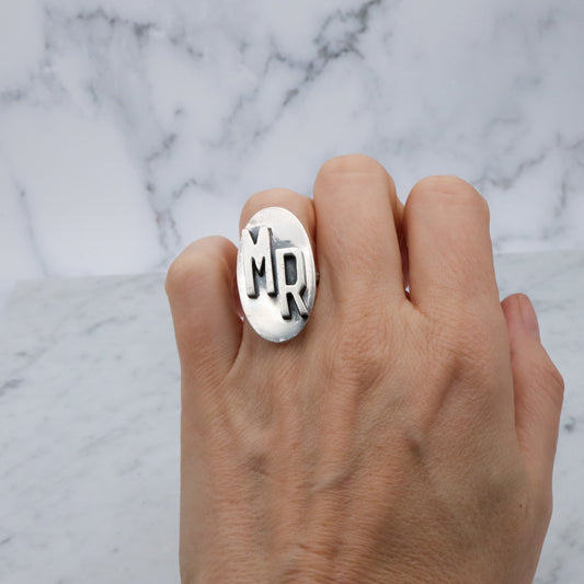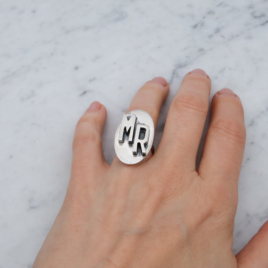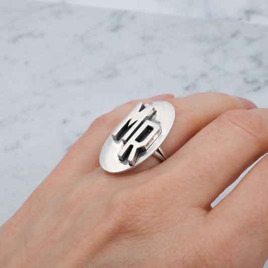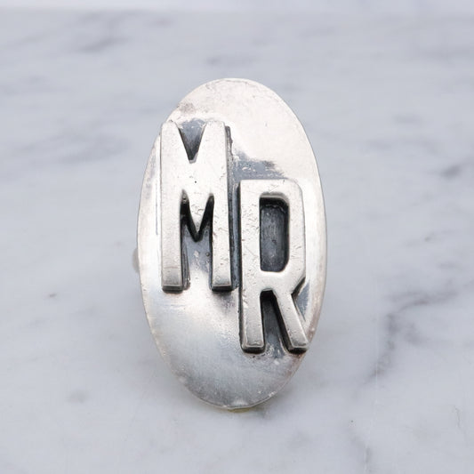 Mid Century sterling block letter "MR" ring, size 7 adjustable