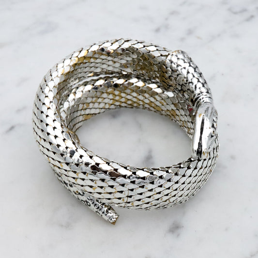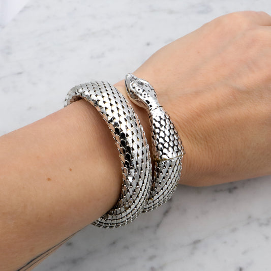 Mid Century vintage Whiting & Davis silver tone thick snake wrap bracelet