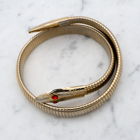 Mid Century vintage gold tone large snake wrap bracelet