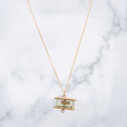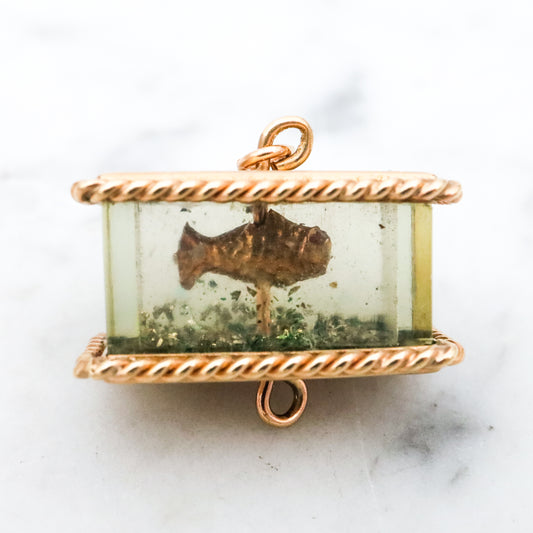 Rare Mid Century 9k gold moving fish tank charm pendant