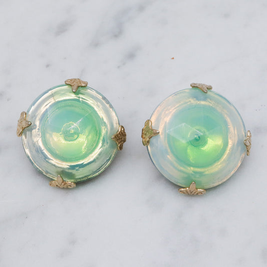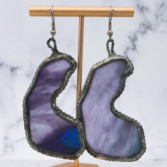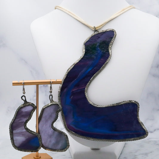 Mid Century studio artisan slag glass pendant necklace and earrings set