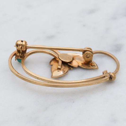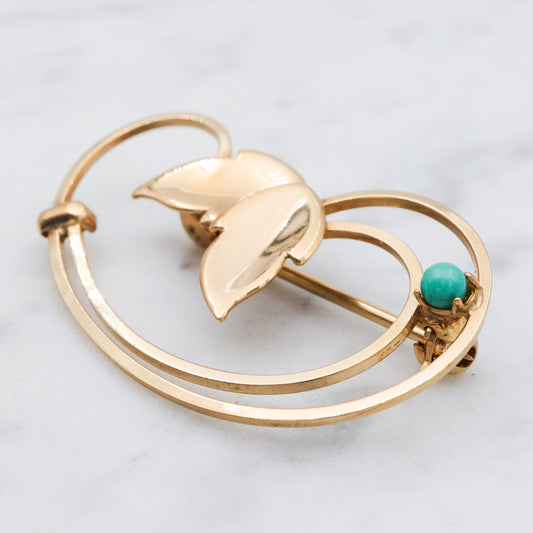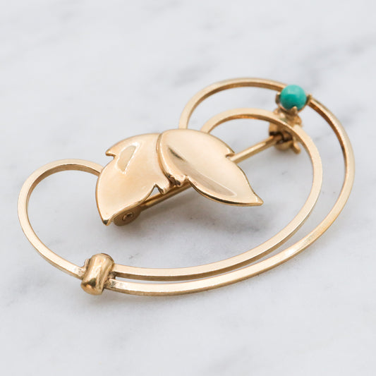 Mid Century Modern Curtis Creations 14k gold filled & turquoise ivy brooch