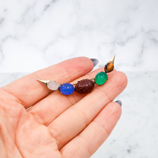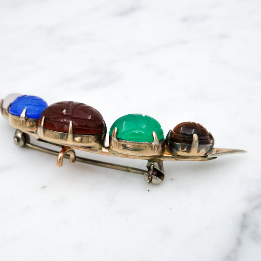 Mid Century Symmetalic sterling silver & gold filled carved scarab crescent moon brooch