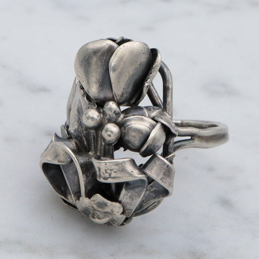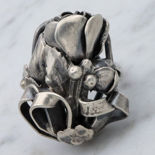 Vintage Mid Century handmade floral sterling silver ring, sz 6